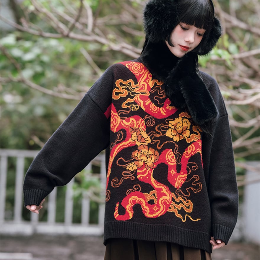 関連キーワード: #サブカル系 #中華風 #ストリートファッション #ジャカードセーター #蛇 #ドラゴン #個性的 #古怪舎 #オーバーサイズ #ユニセックス