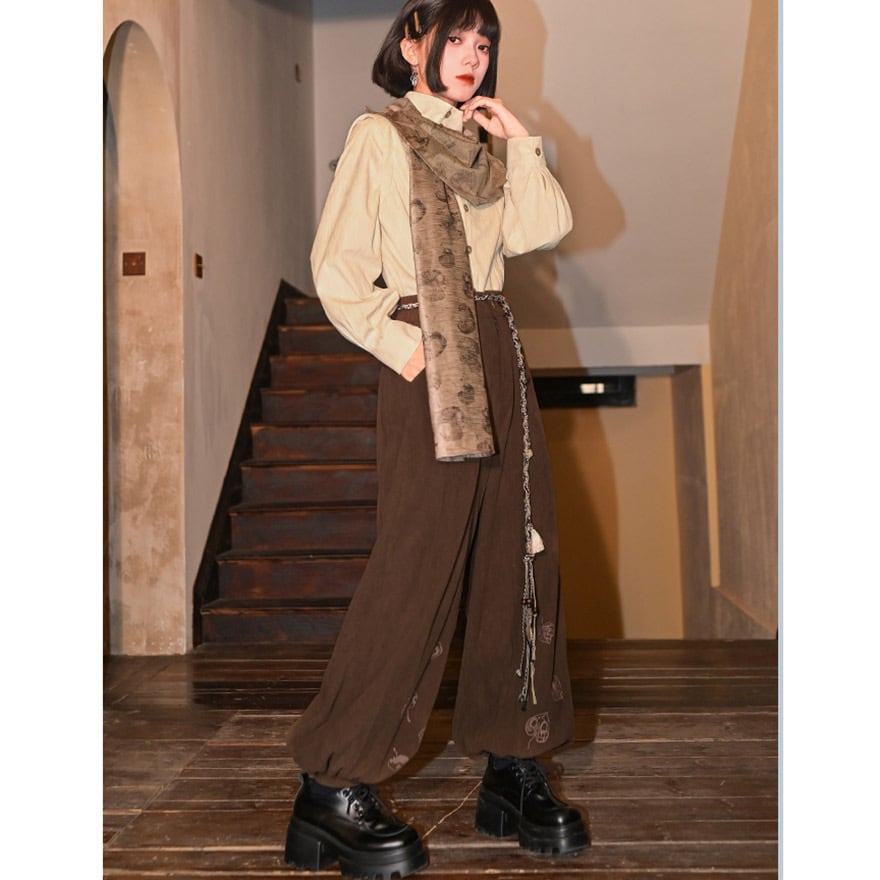 関連キーワード: #サブカル系 #中華風 #チャイナ #レトロ #コーデュロイ #パラシュートパンツ #バルーンパンツ #刺繍 #個性的 #古怪舎