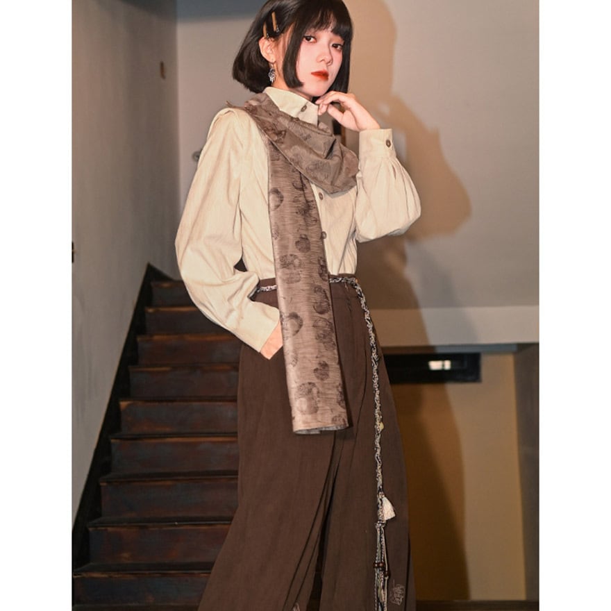 関連キーワード: #サブカル系 #中華風 #スタンドカラーシャツ #アシンメトリー #デザインシャツ #個性的 #モード系 #古怪舎 #ケープ #2WAY