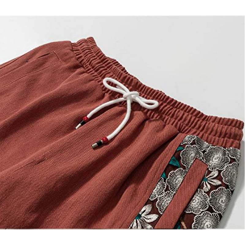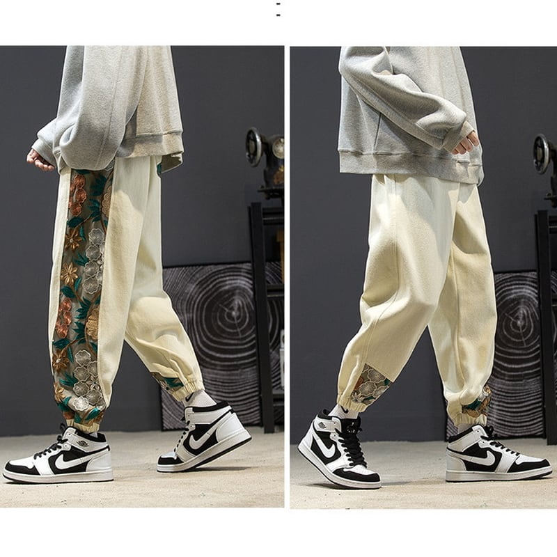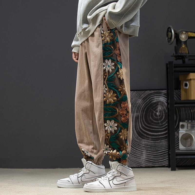 花柄刺繍がビジュアル抜群なメンズイージーパンツ