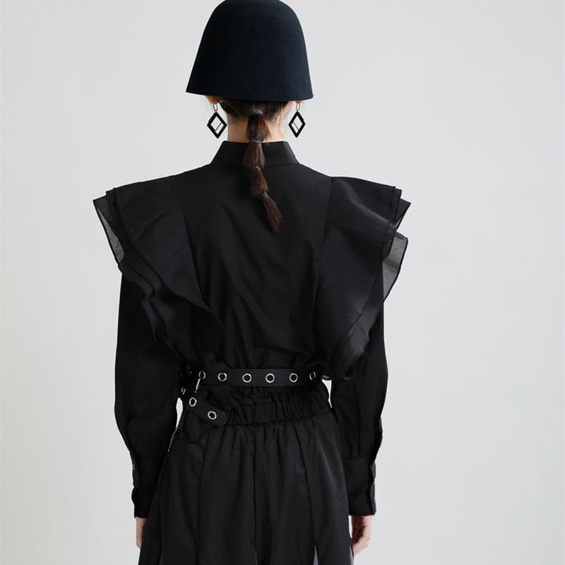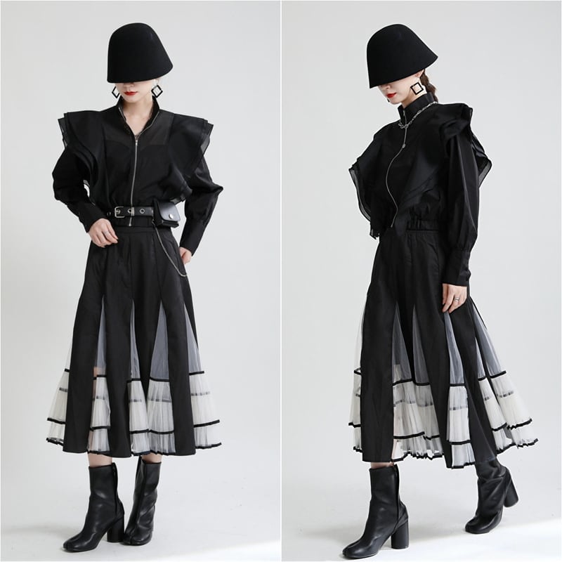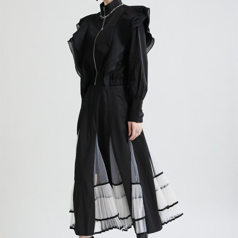 【即納M】モード系 スタンドカラー シャツ ZIPアップ メッシュ 大人 dressy