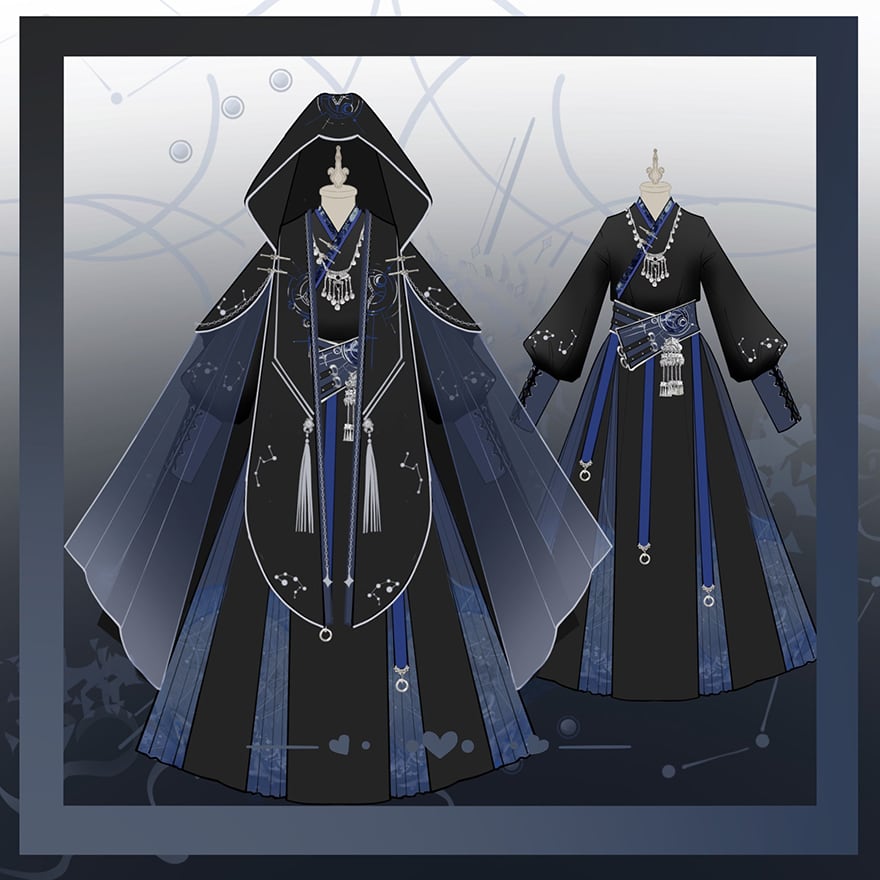 関連キーワード: #中華風 #チャイナ #ファンタジー #セットアップ #コンカフェ衣装 #舞台衣装 #コスプレ #星空 #魔法使い #占星術師 #サブカルファッション