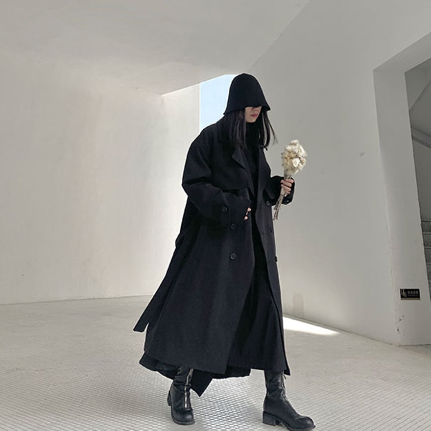 関連キーワード: #モード系 #ゴシック #トレンチコート #ロングコート #アウター #黒 #オールブラック #通勤 #オーバーサイズ #マニッシュ #秋冬