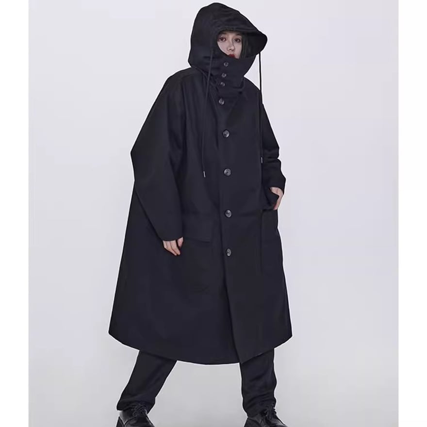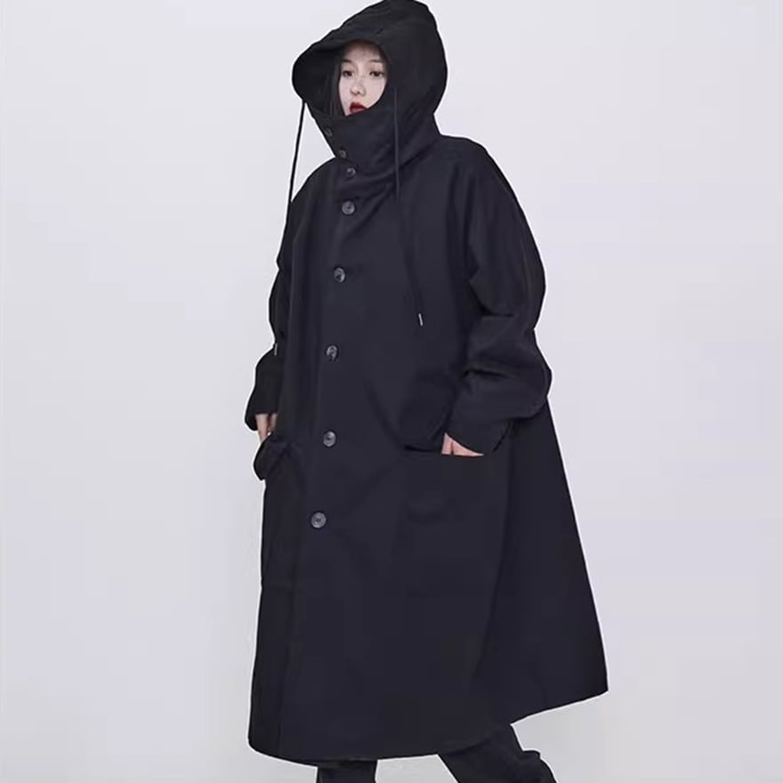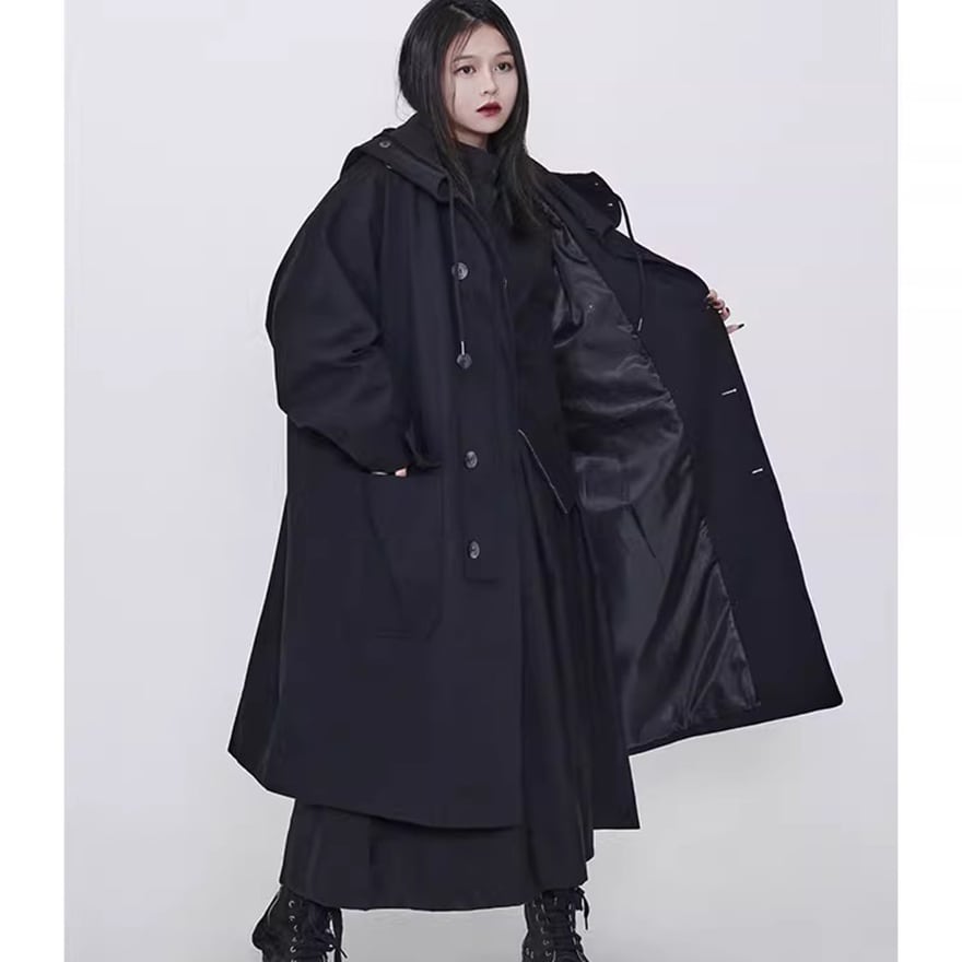 関連キーワード: #モード系 #ゴシック #アウター #コート #ロングコート #フード付き #オーバーサイズ #ビッグシルエット #黒 #オールブラック #個性的 #秋冬