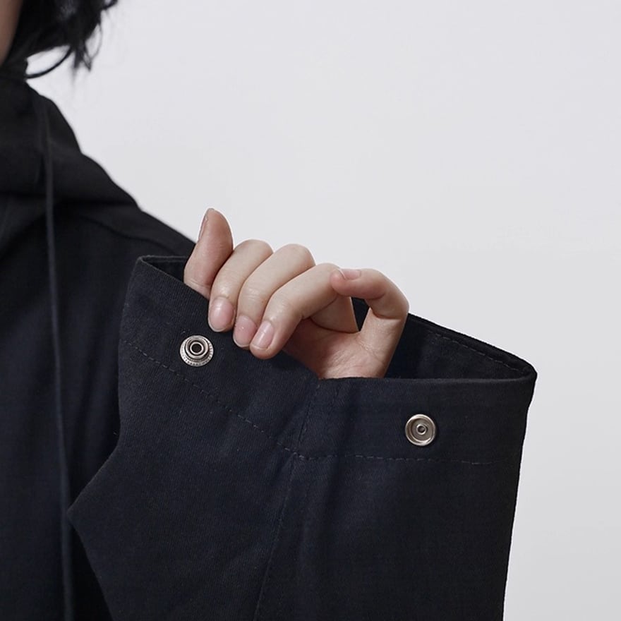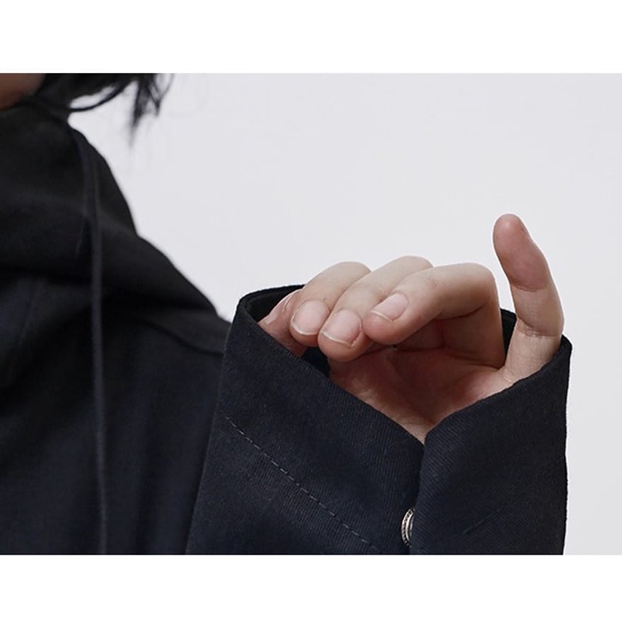ゴスロリ ミスティック・ブラック・フーデッドコート – 顔を隠す 禁断のオーバーサイズ