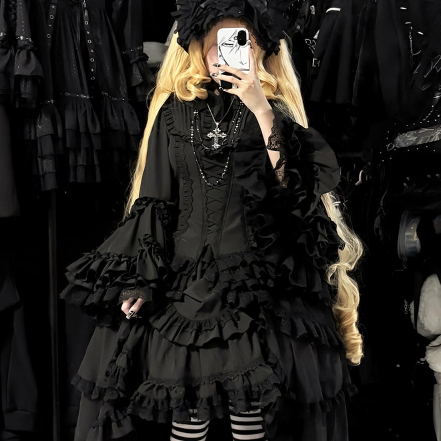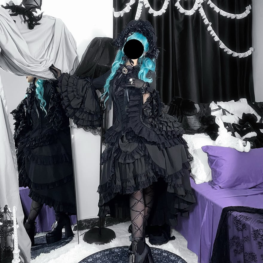 パニエを入れたボリュームのあるスカートと合わせれば、完璧なゴシック&ロリータのシルエットが完成します。