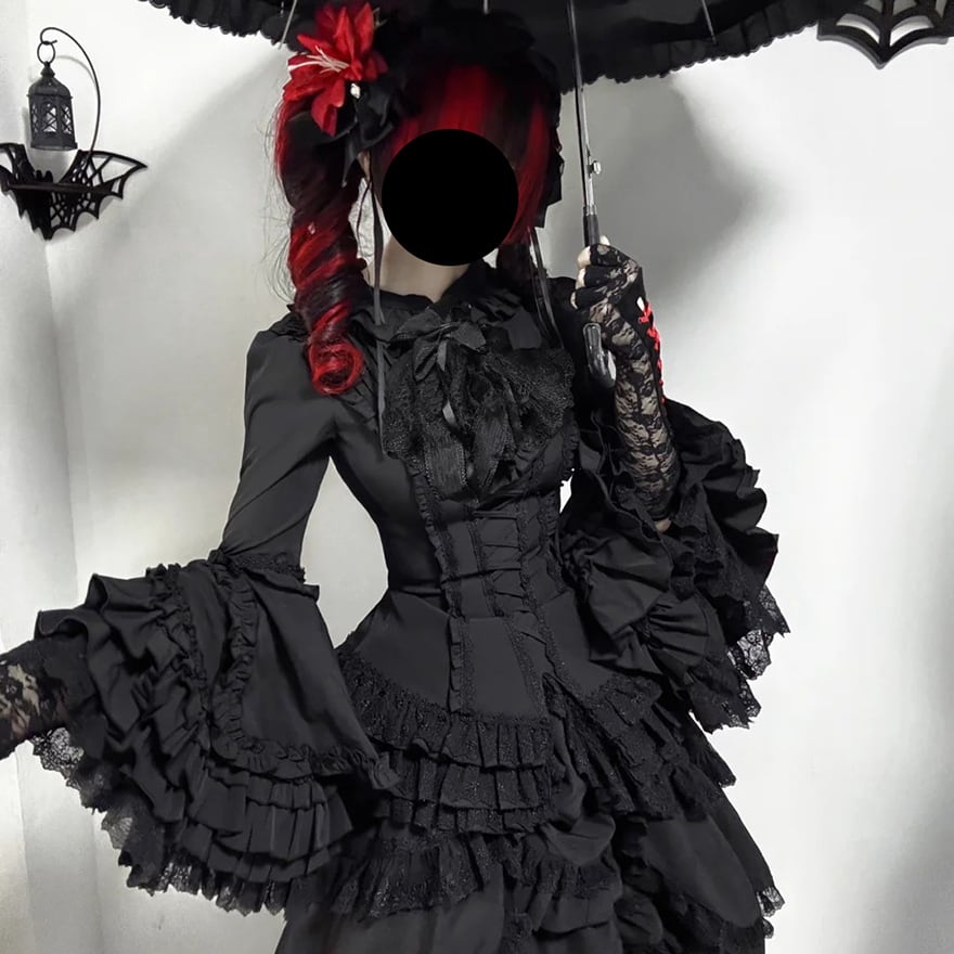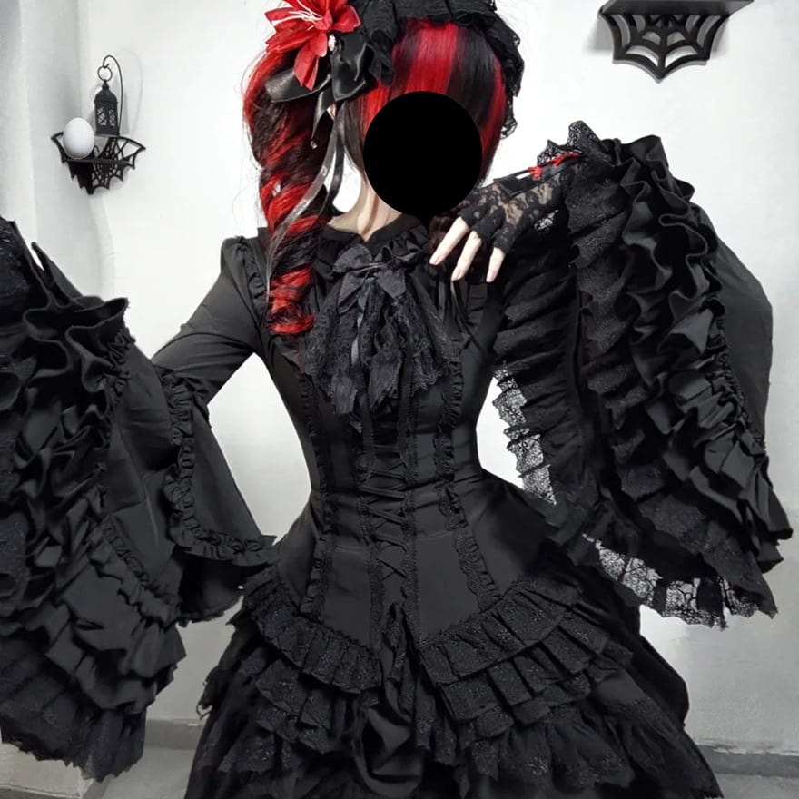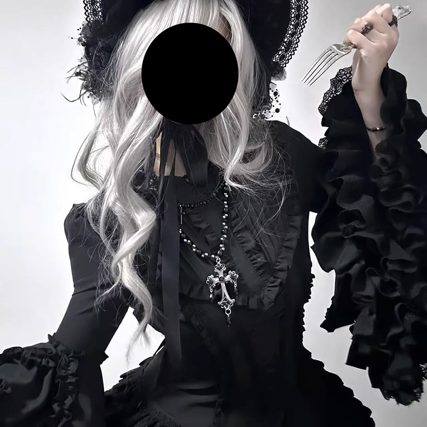 関連キーワード: #ゴスロリ #ゴシック #ロリータファッション #シャツ #ブラウス #姫袖 #レースアップ #フリル #黒 #貴族 #地雷系 #サブカル #闇かわいい