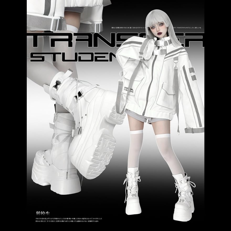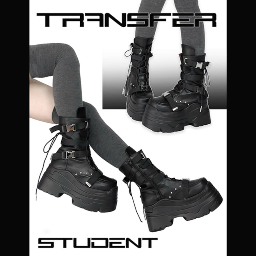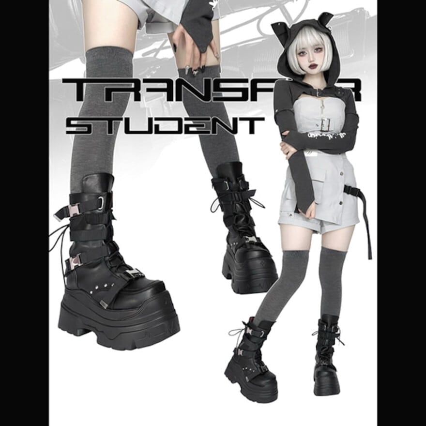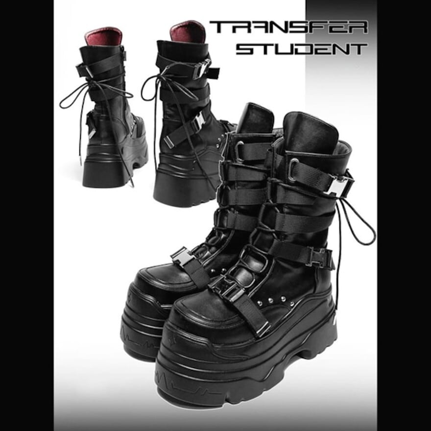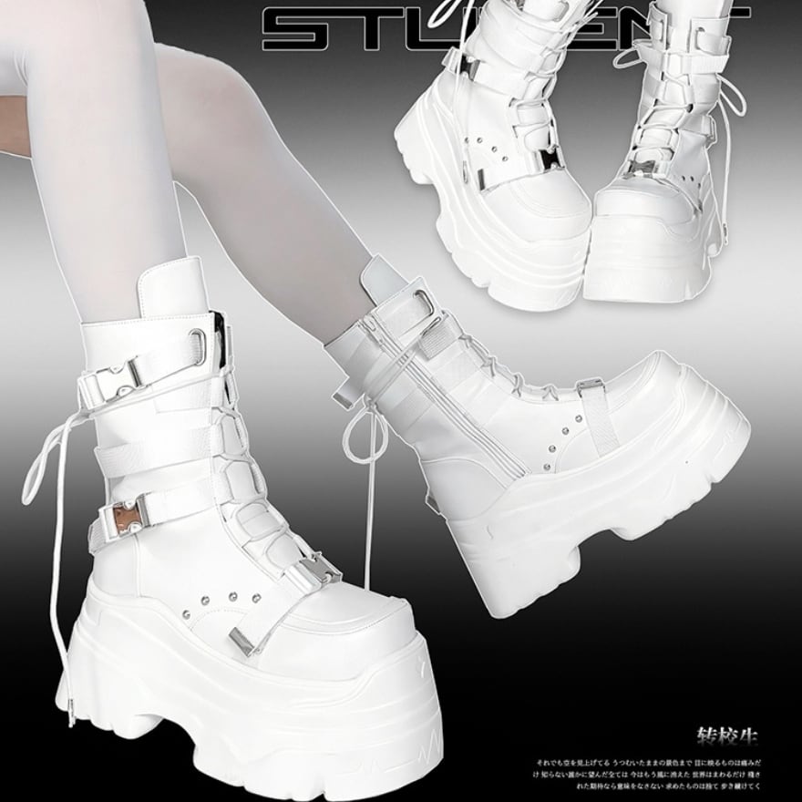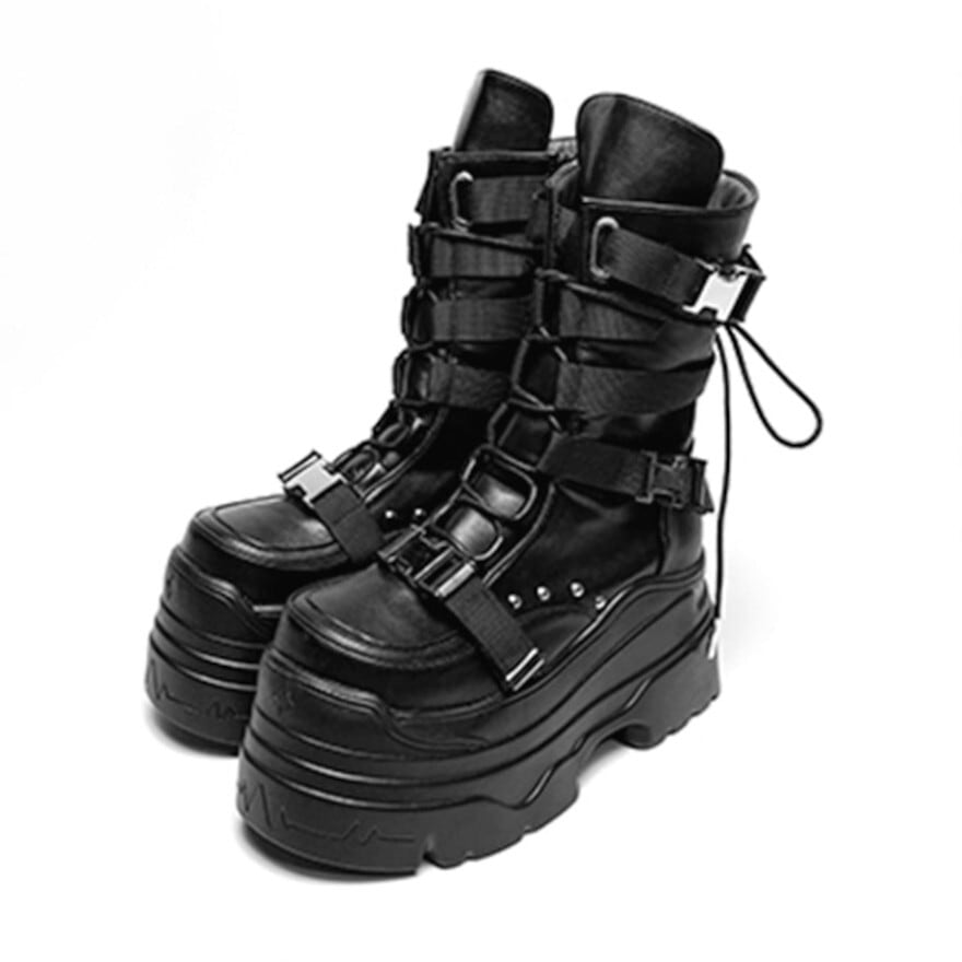 パンク 厚底ブーツ 編み上げ ストリートファッション