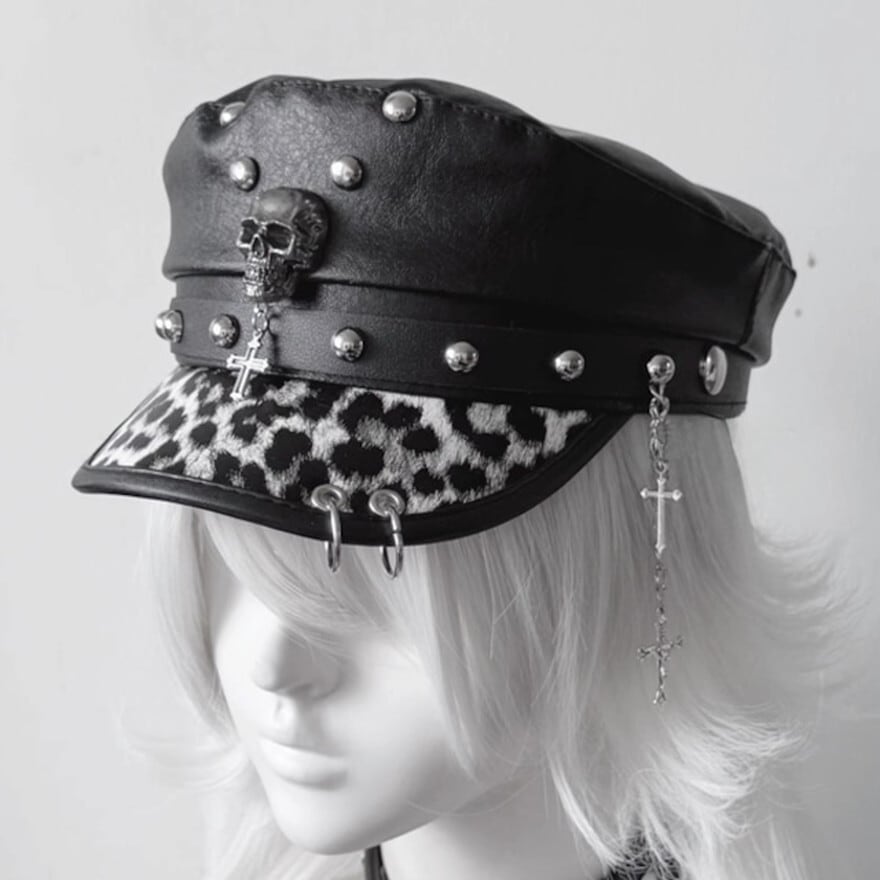 スカルスタッズ キャップ ゴスロリ PUレザー ライブ パンクファッション