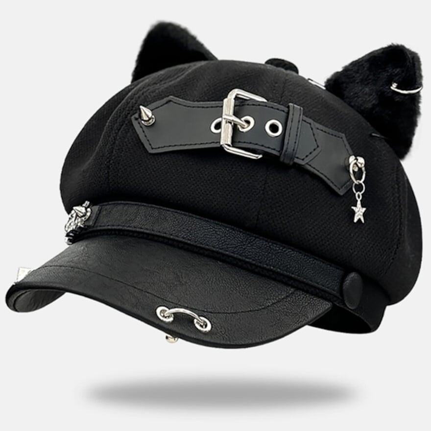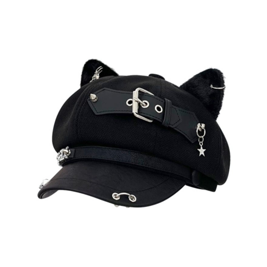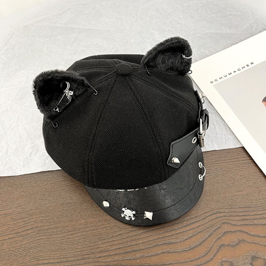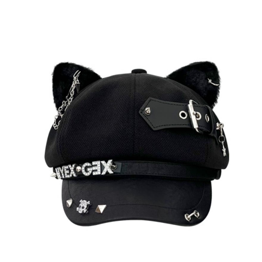 ネコ耳帽子 キャップ ハトメ リベット パンクファッション