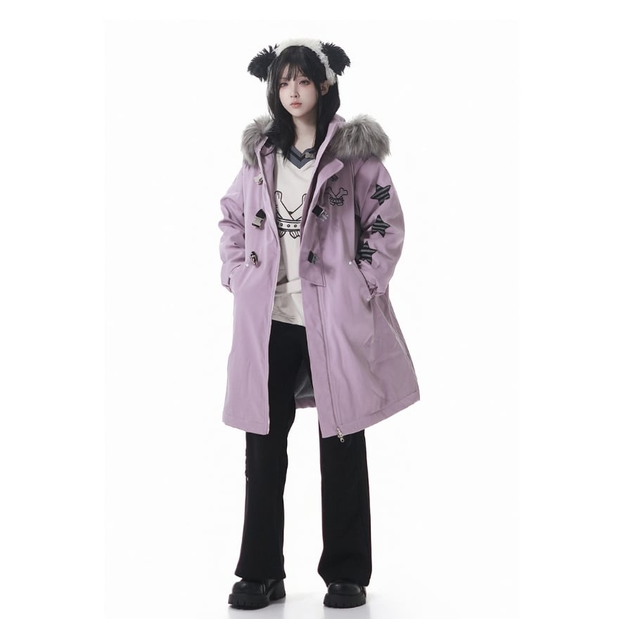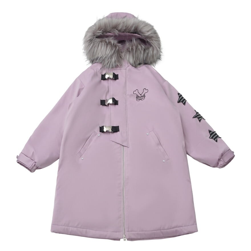 ふかふかなフェイクファーにワンポイントプリントのモッズコートです。