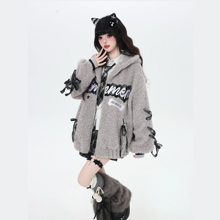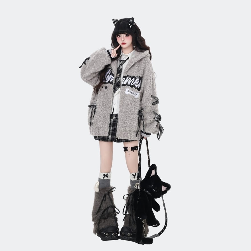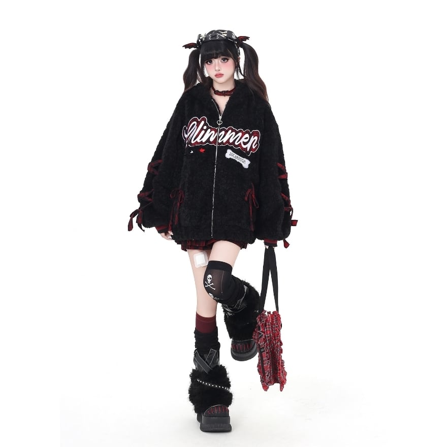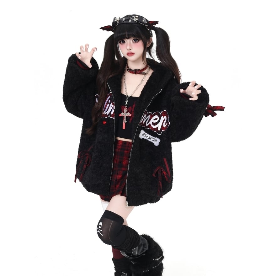パンクロリィタ 甘辛MIX ジャケット ふわふわ ボア フーディ ロリパンファッション