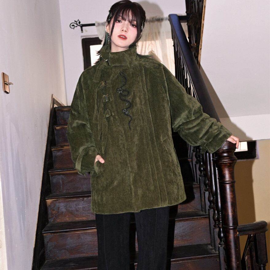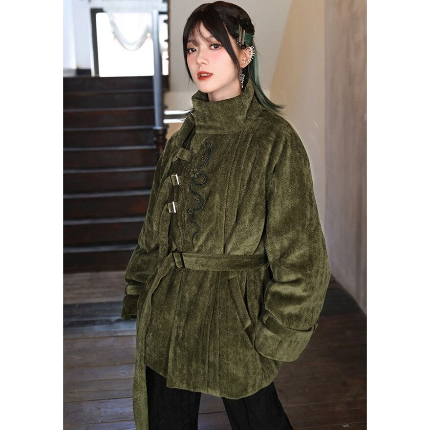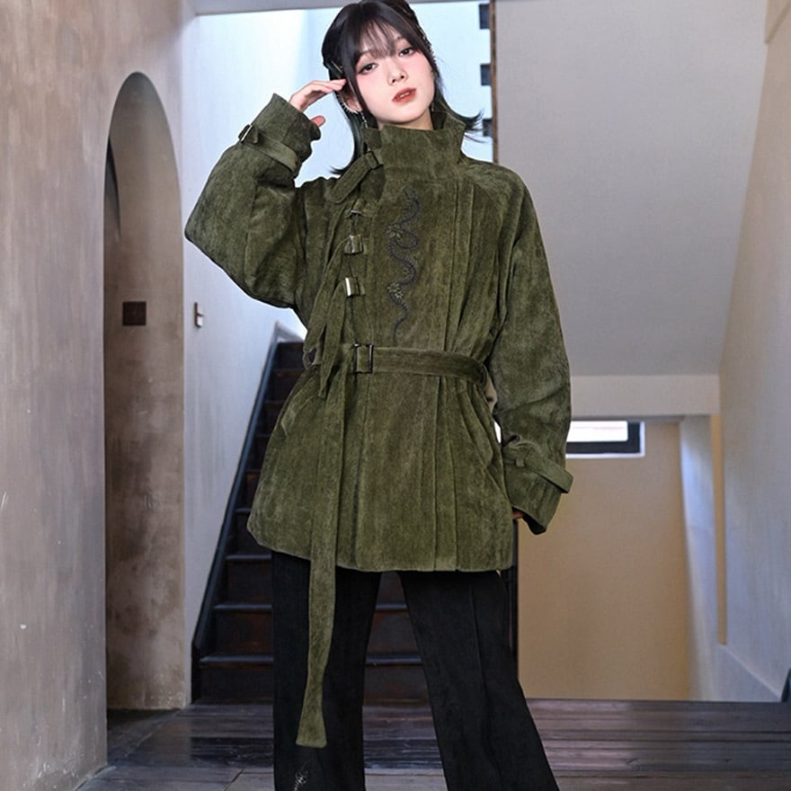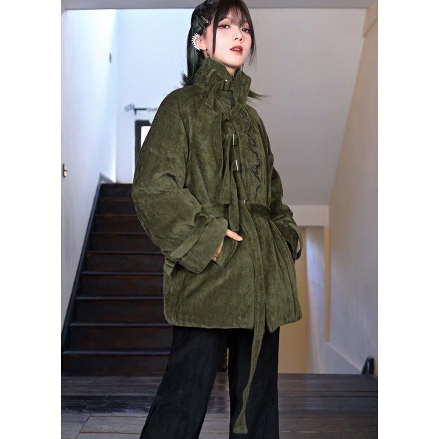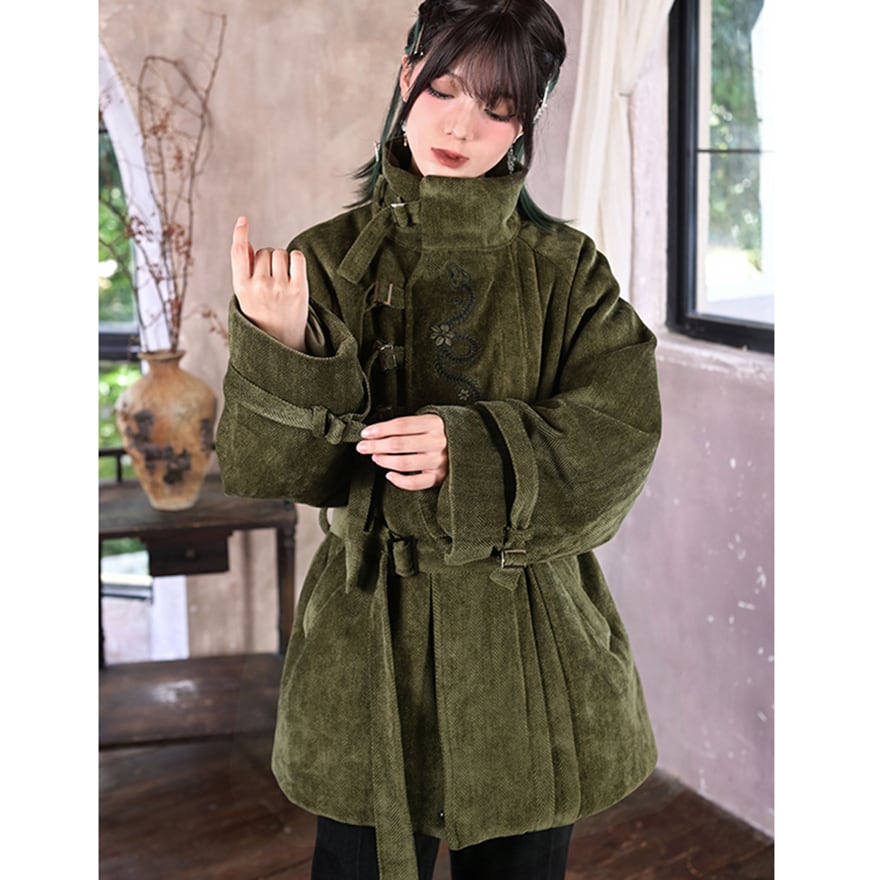 関連キーワード: #サブカル系 #中華風 #チャイナジャケット #コーデュロイ #刺繍 #蛇 #スタンドカラー #ヴィンテージ風 #レトロ #個性的 #古怪舎 #モスグリーン