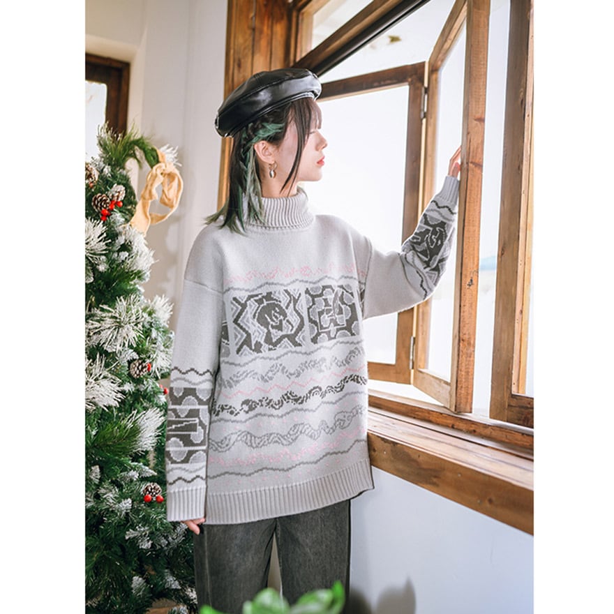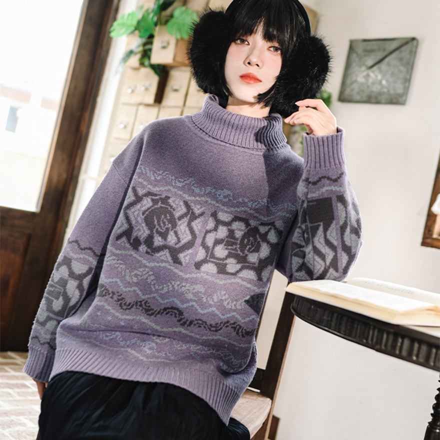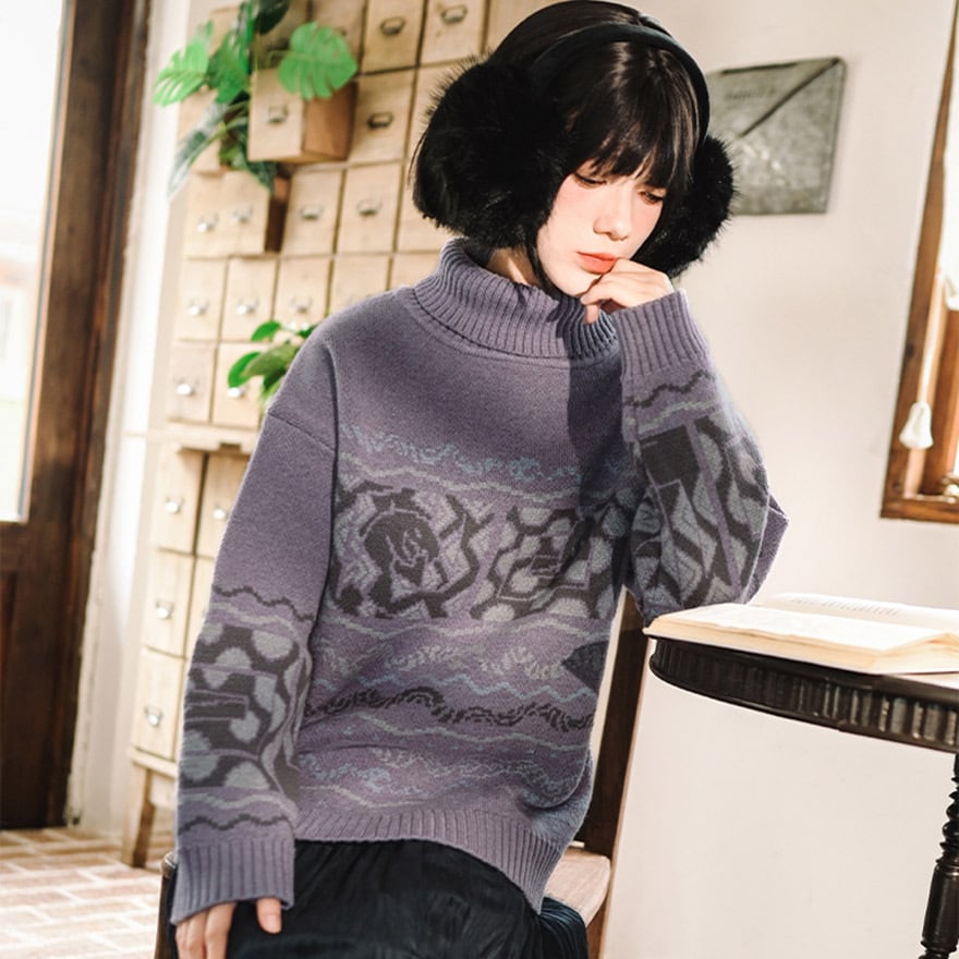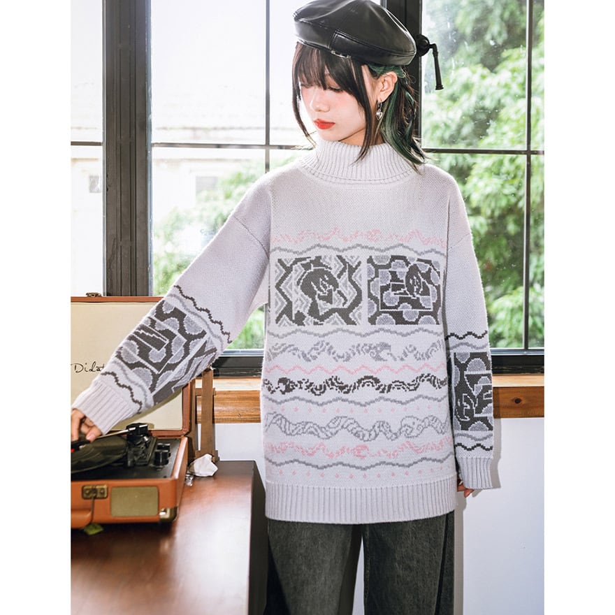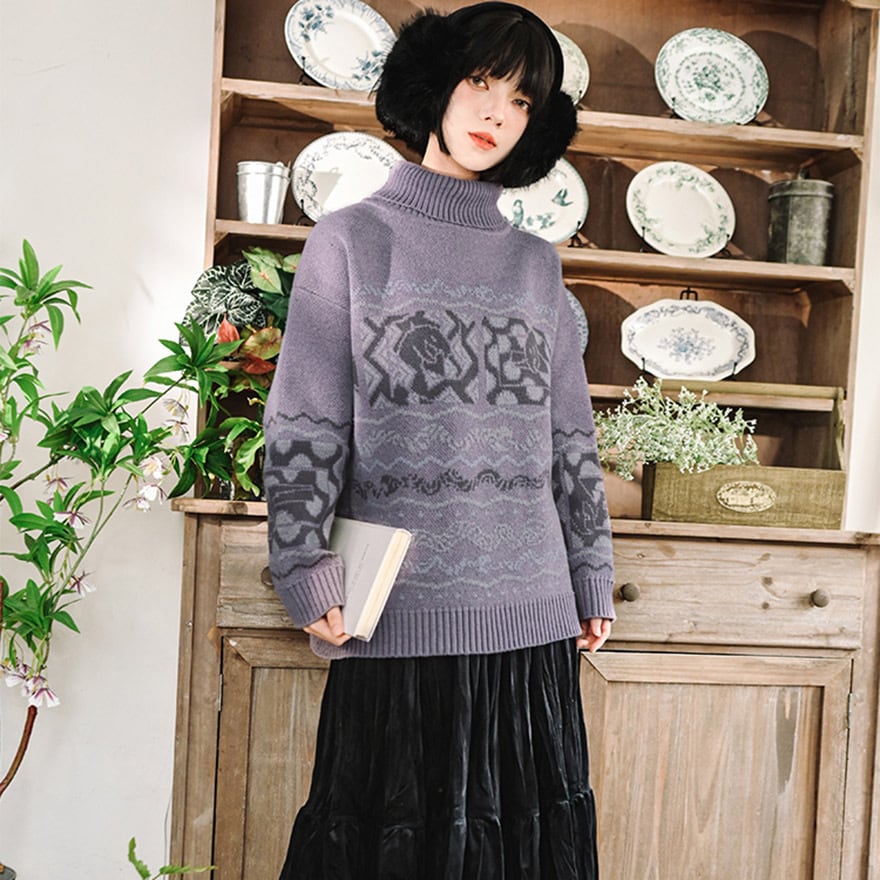 中華ゴシック レトロ ハイネック ジャカードセーター 古怪舎