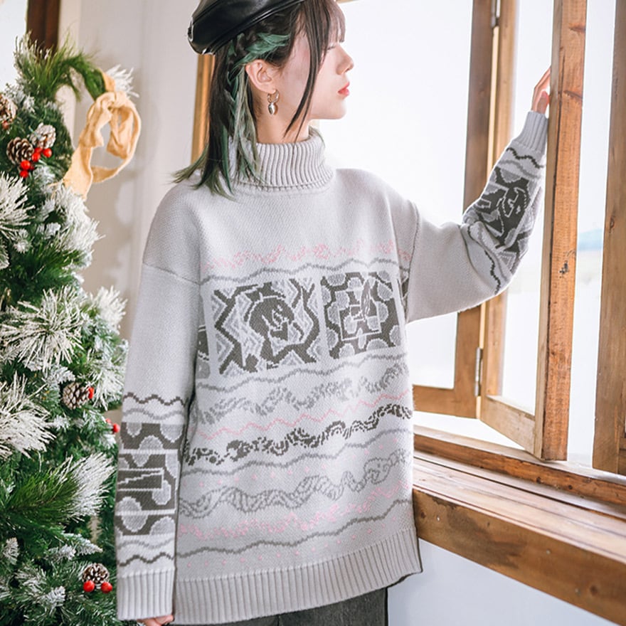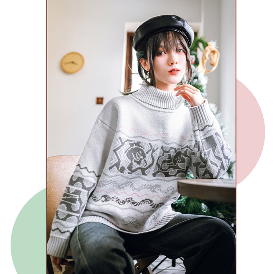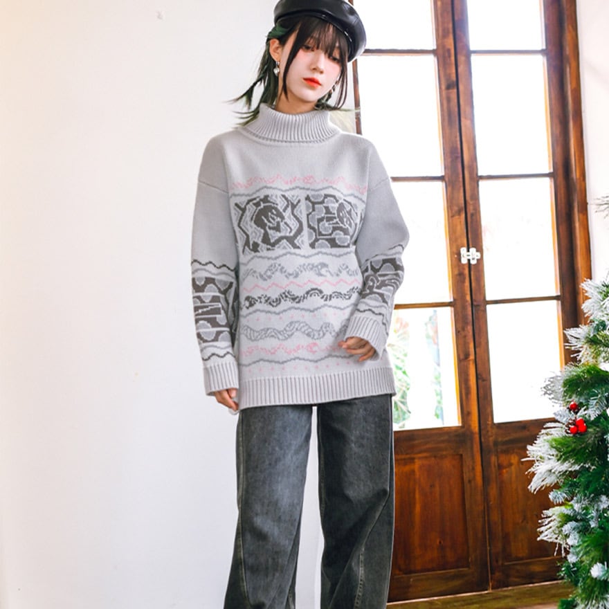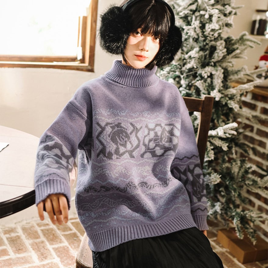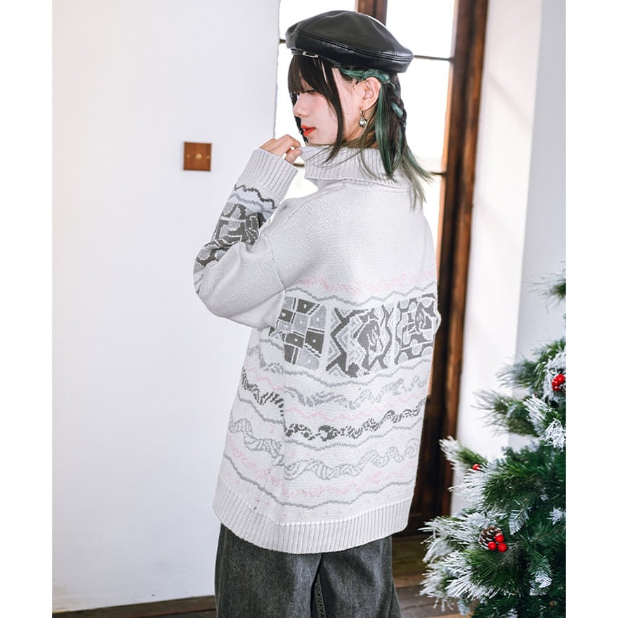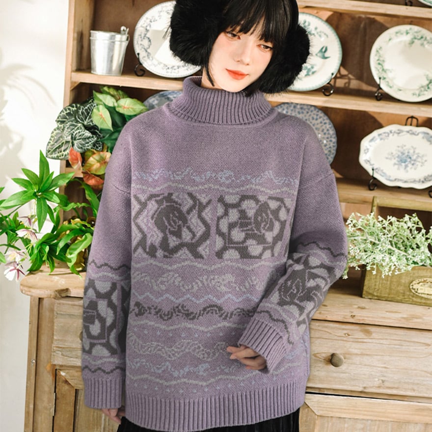 中華ゴシック レトロ ハイネック ジャカードセーター 古怪舎