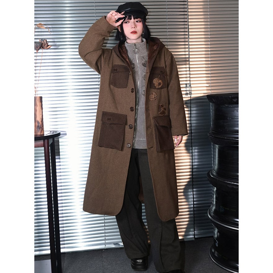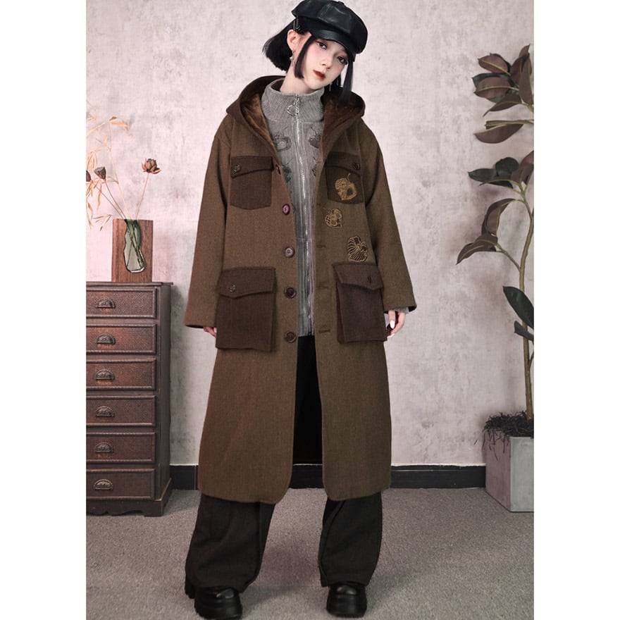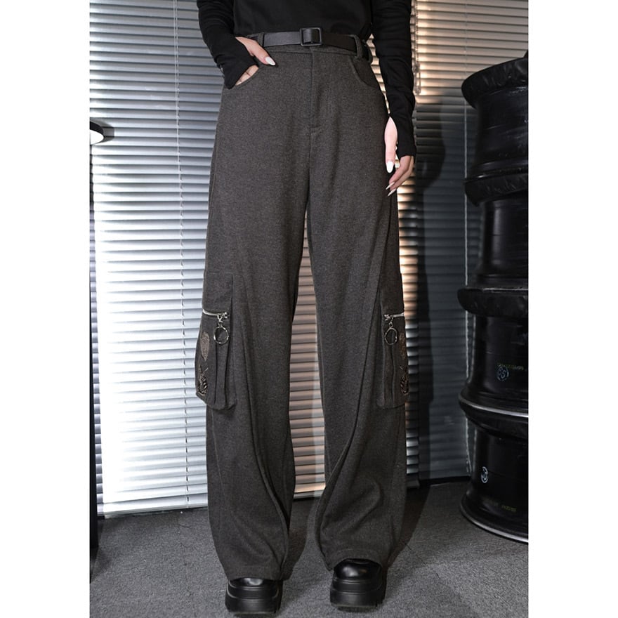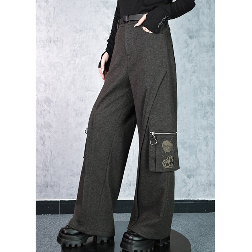 中華ゴシック グレー ウール ワイドレッグパンツ 刺繍 古怪舎