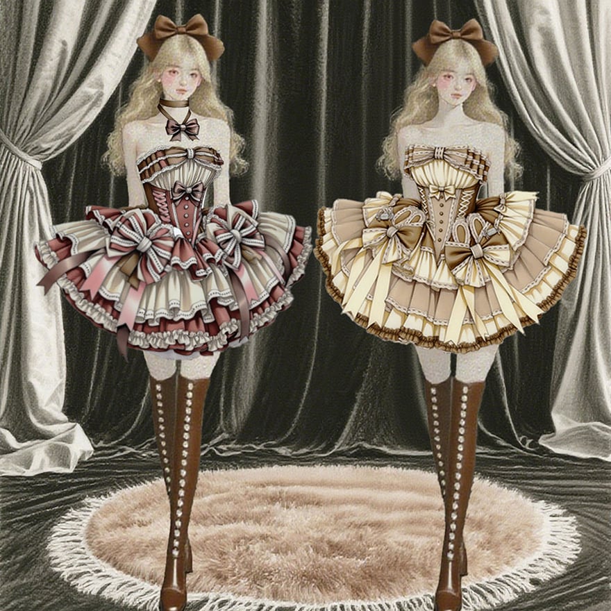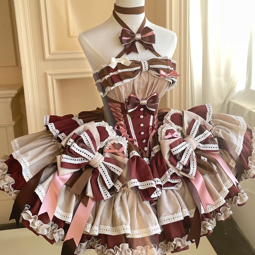 関連キーワード: #ロリータ #パーティドレス #プリンセス #ブラウン #イベント衣装 #ワンピース #甘ロリ #チョコレート #スイーツ #リボン #フリル #コルセット #ドーリー #可愛い #サブカルファッション