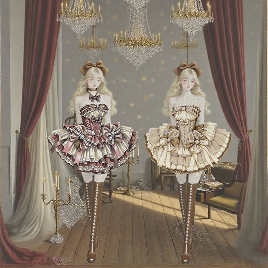 リボンやレースの縁取りが、デザインに更なる深みと可愛らしさを加えています。