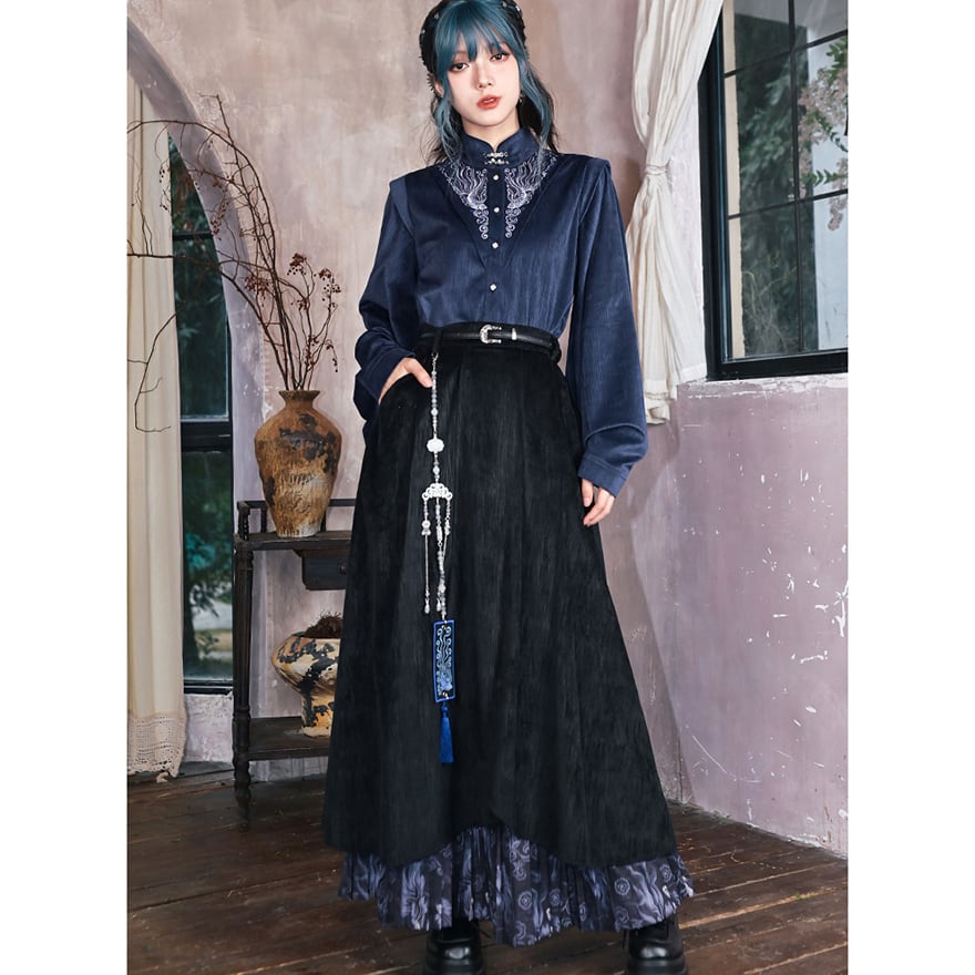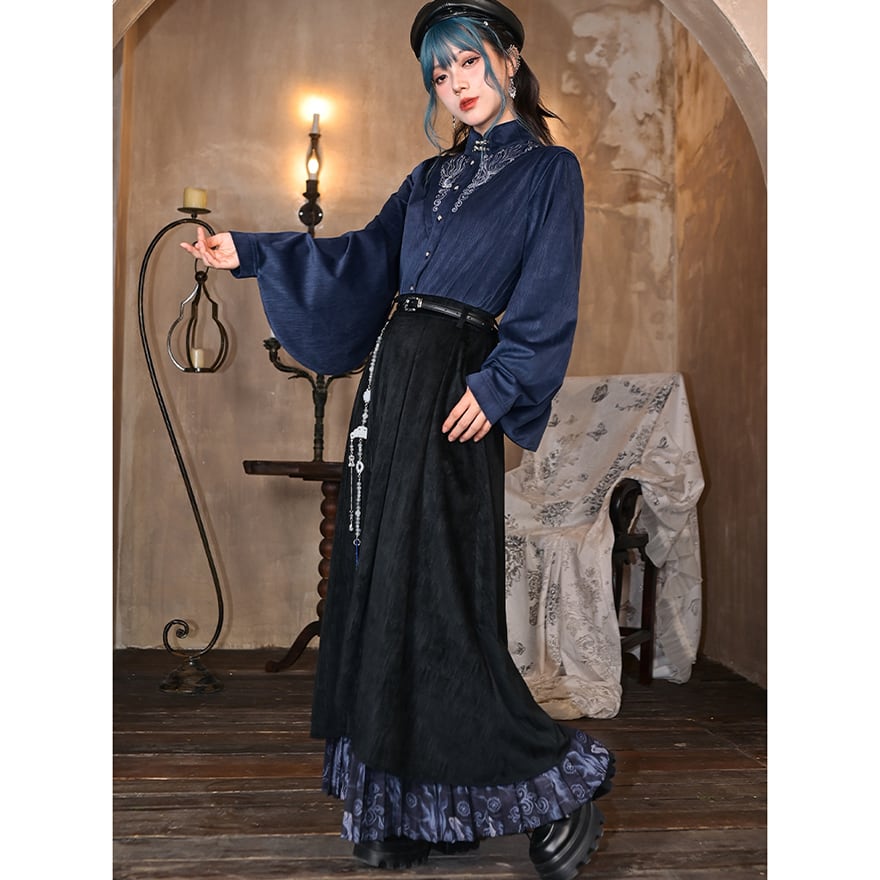 別売りのチャイナ風ブラウスと合わせれば、統一感のあるクールでミステリアスな世界観が完成します。