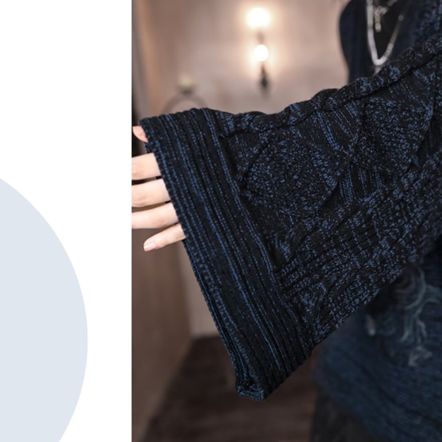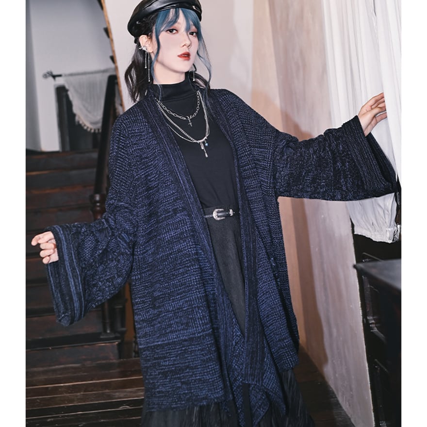 羽織りのようなワイドなシルエットと、たっぷりと広がる袖が、個性的でミステリアスな雰囲気を醸し出します。