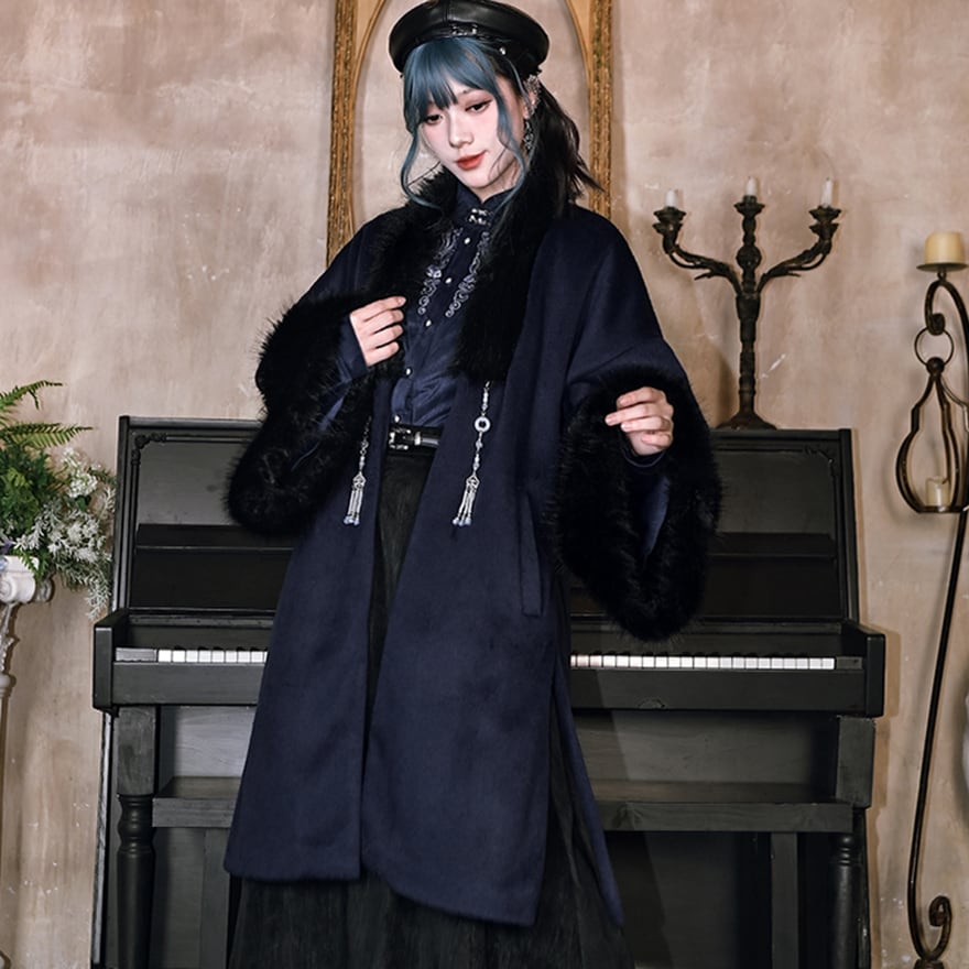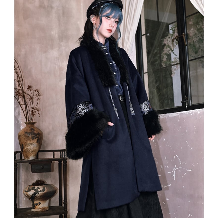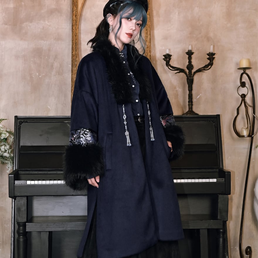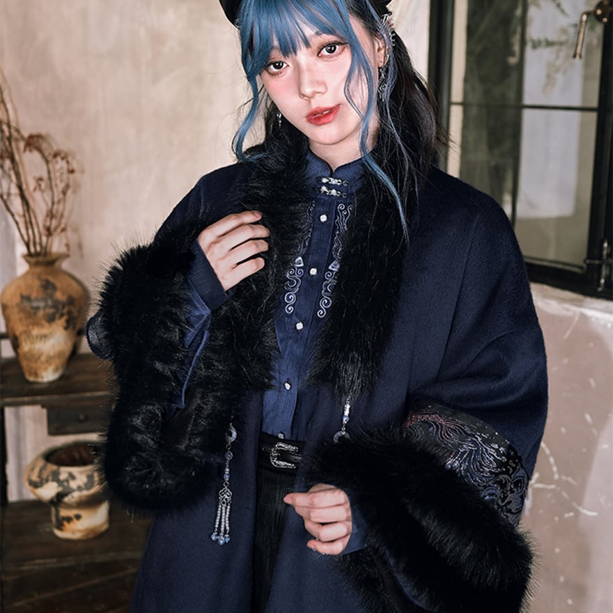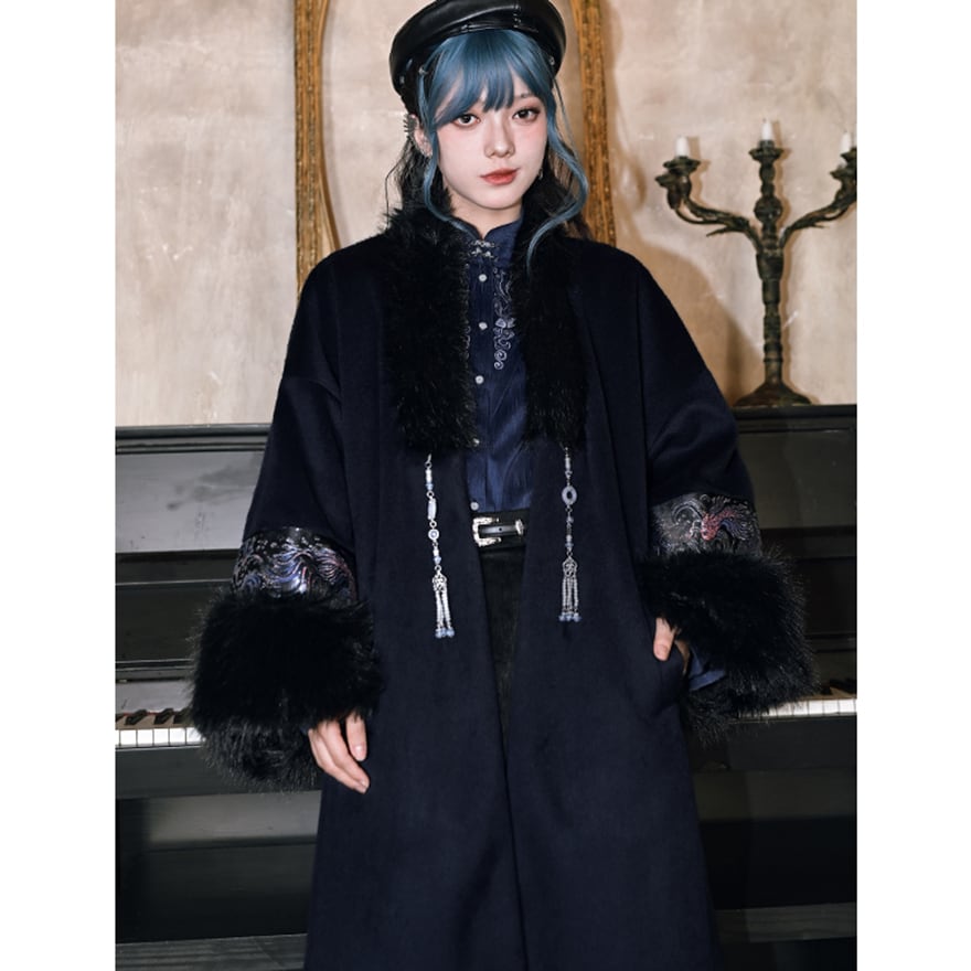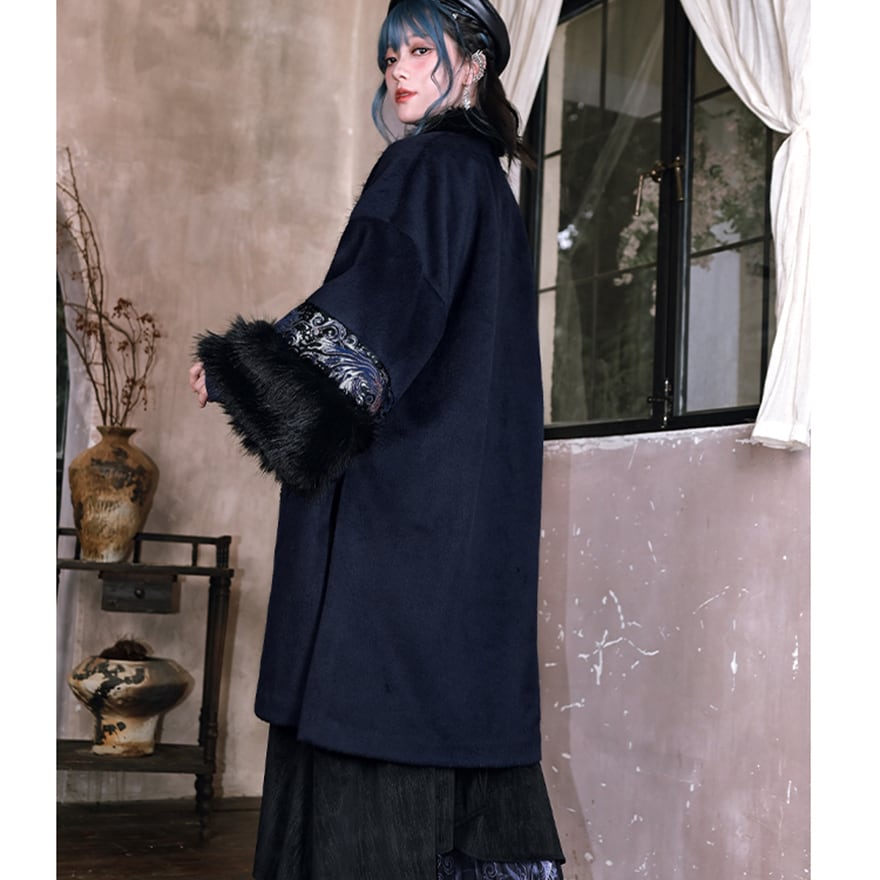 中華ゴシック チャイナ風 秋冬 フェイクファー ジャケット フリース 銀糸装飾 古怪舎