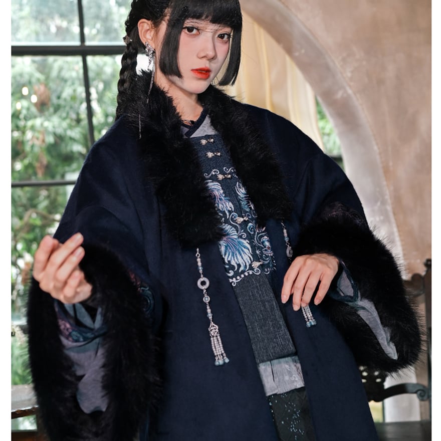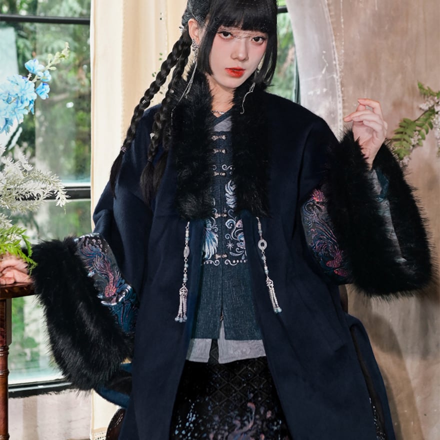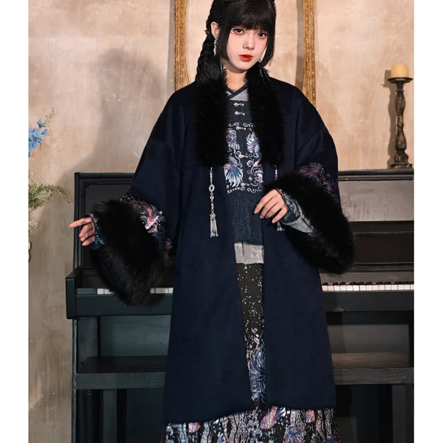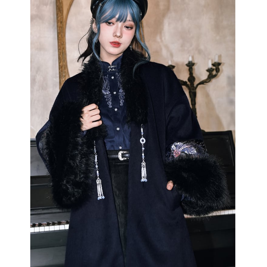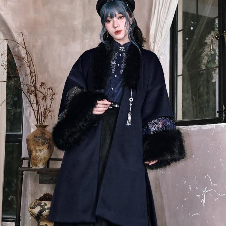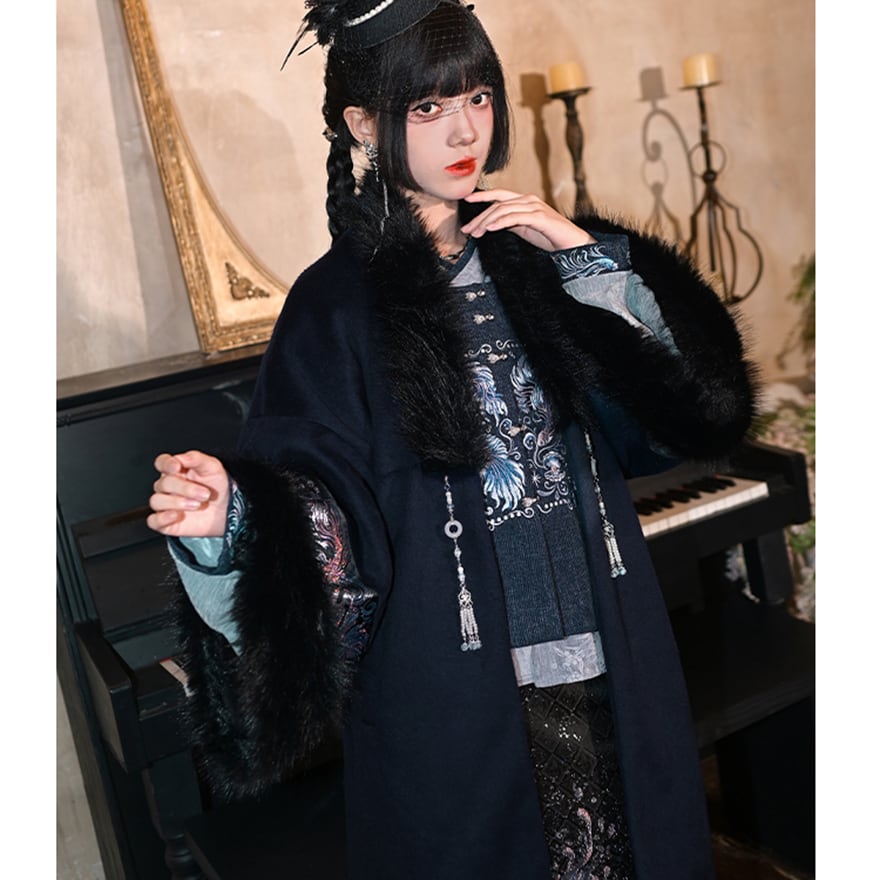 中華ゴシック チャイナ風 秋冬 フェイクファー ジャケット フリース 銀糸装飾 古怪舎