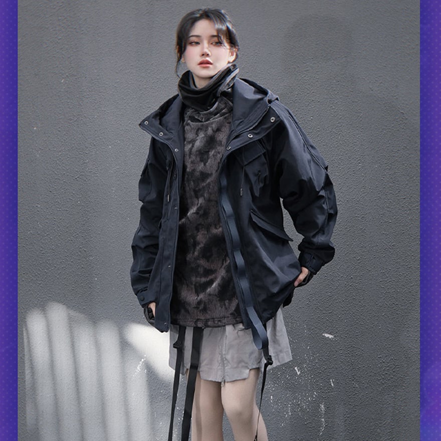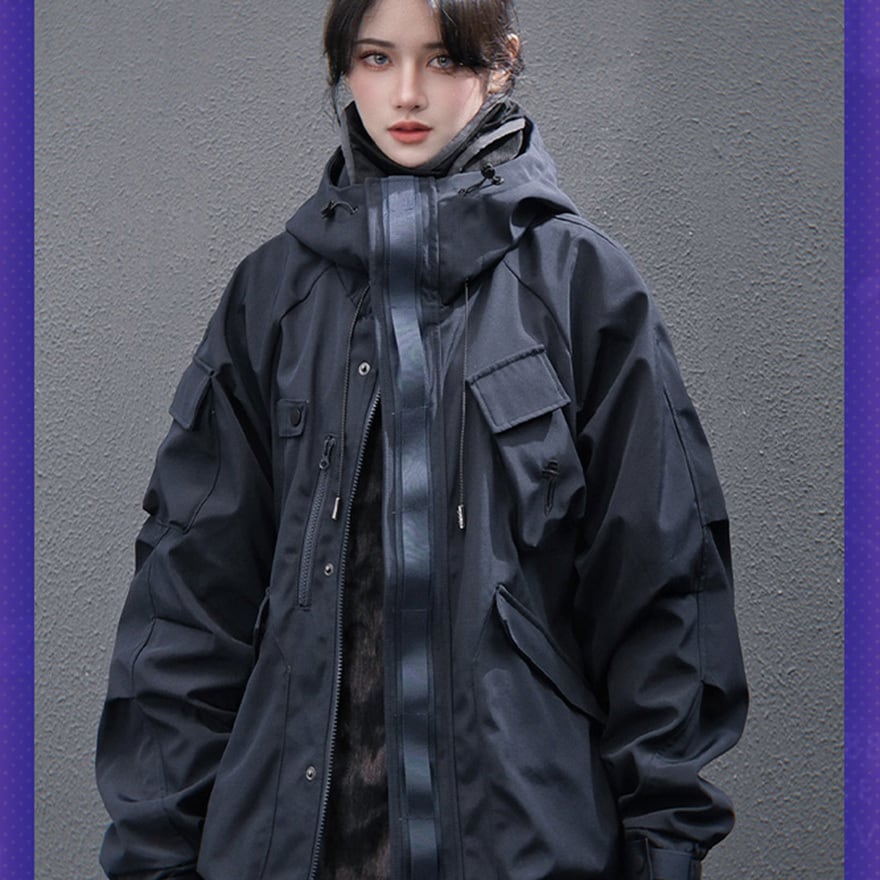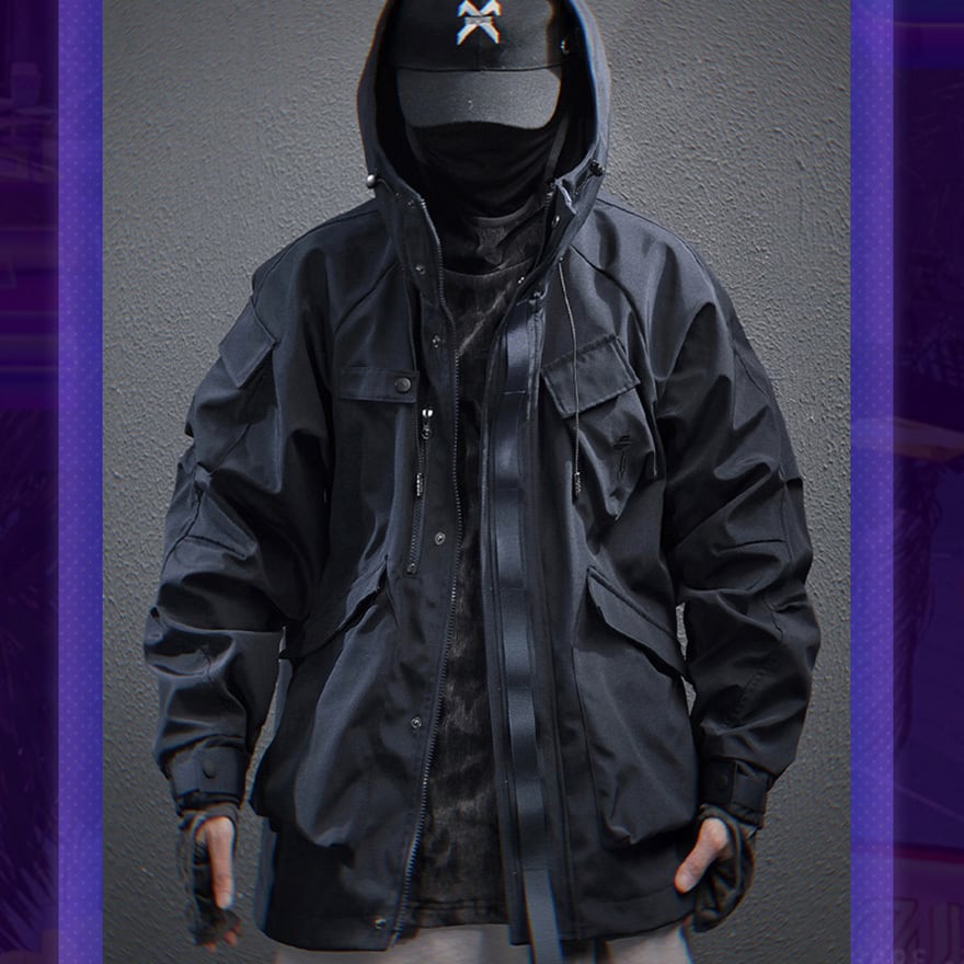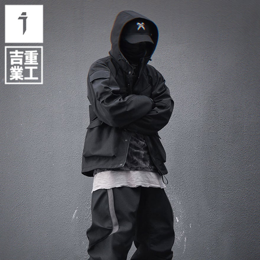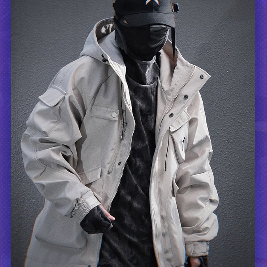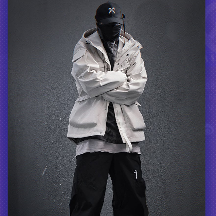 関連キーワード: #サイバーパンク #テックウェア #ジャケット #ウィンドブレーカー #ストリートファッション #モード系 #ユニセックス #ハイネック #フード付き #アウター