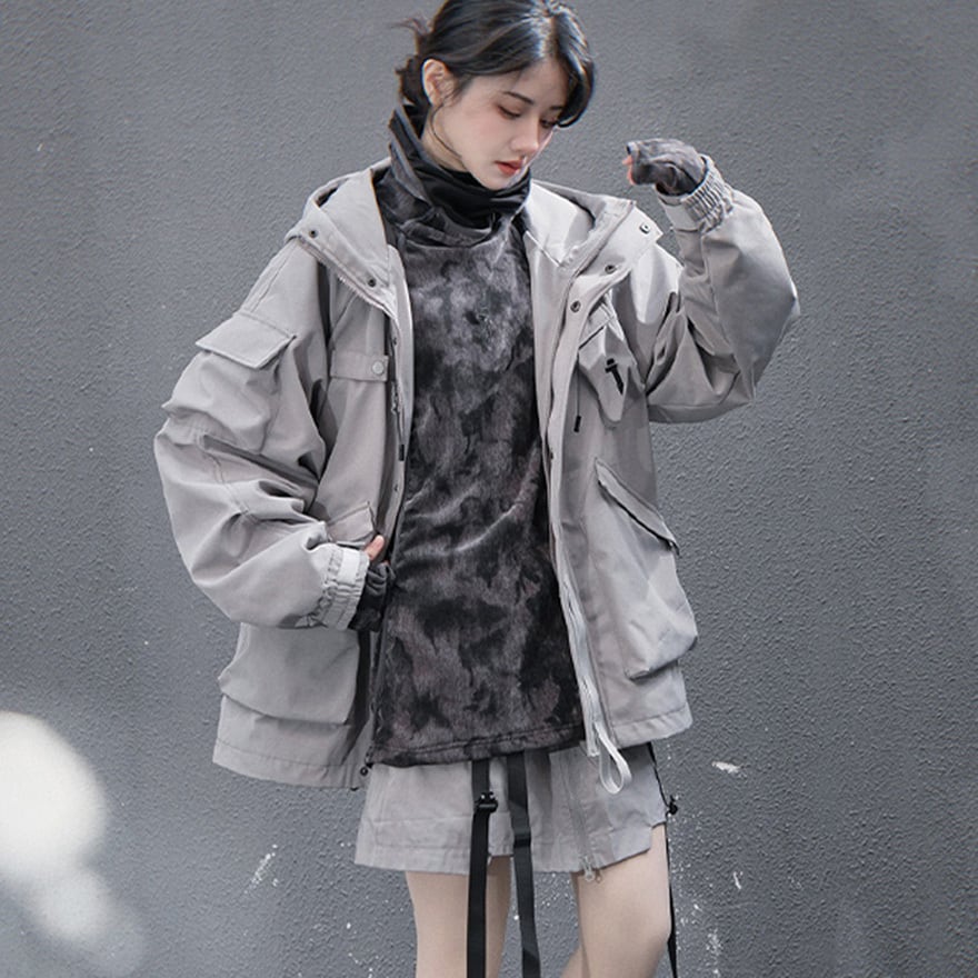 サイバーパンク ジャケット ハイネック フード付き マルチポケット ウィンドブレーカー ユニセックス