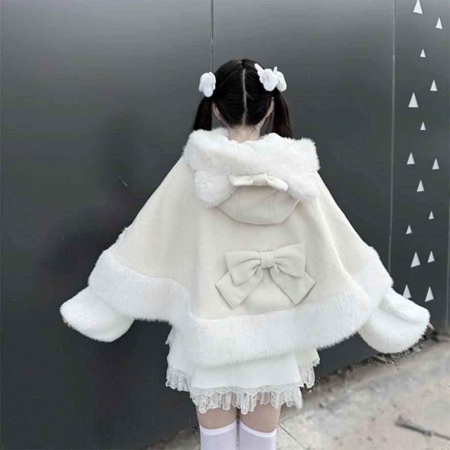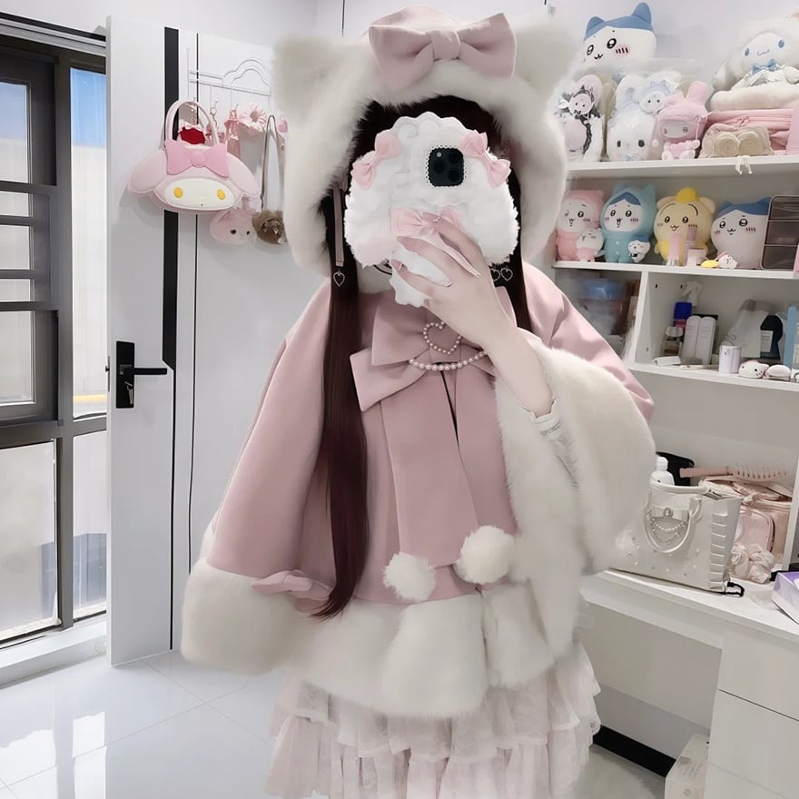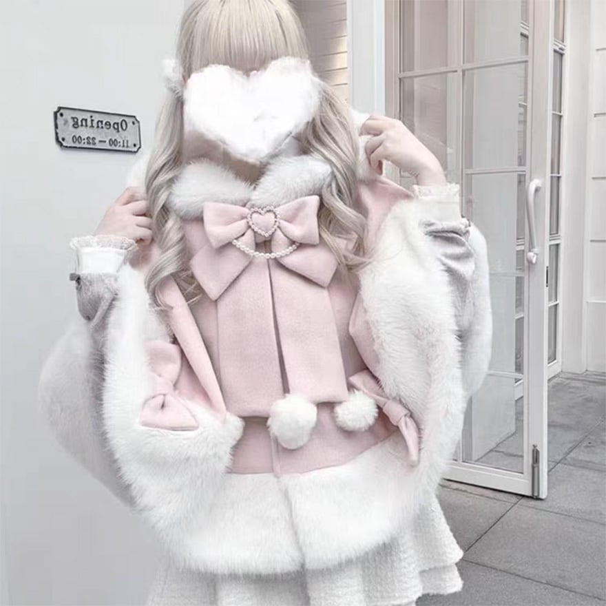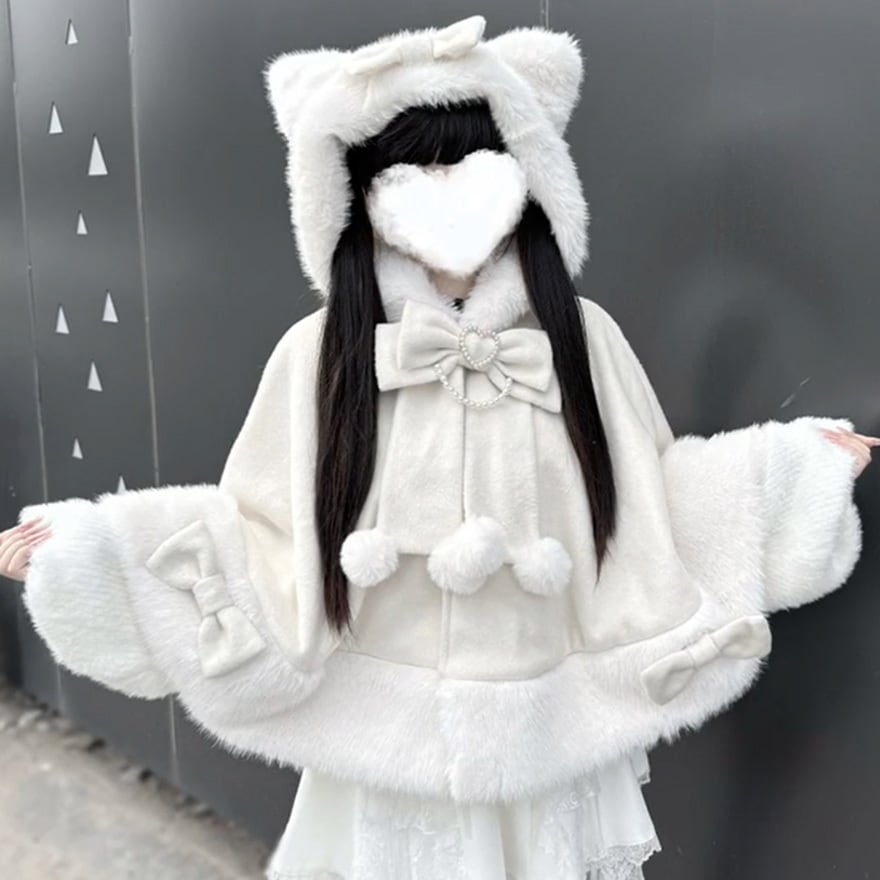 ロリィタ 猫耳ケープ ゆめかわいい フェイクファー もふもふ