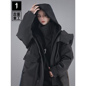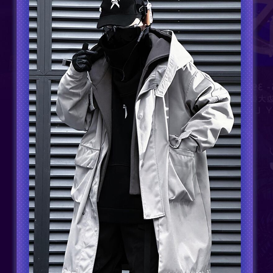 サイバーパンク フード付き オーバーサイズ ミドルコート ウィンドブレーカー ユニセックス