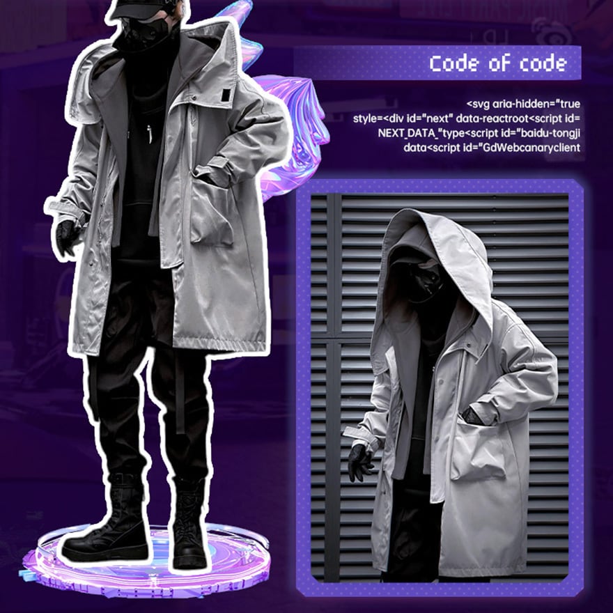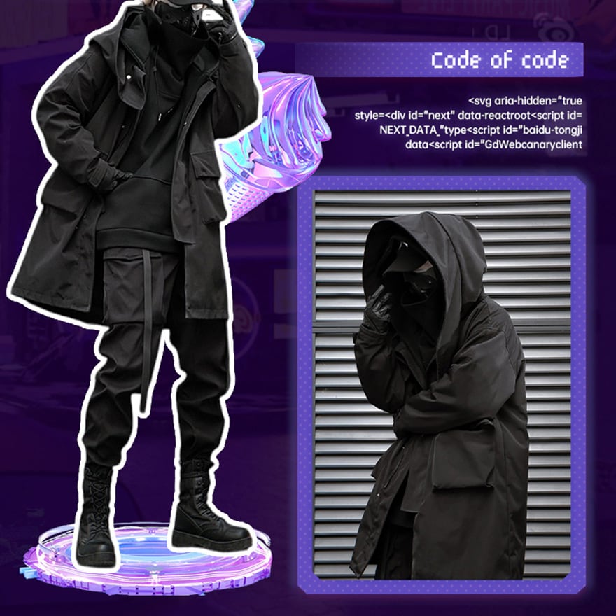 関連キーワード: #サイバーパンク #テックウェア #コート #ウィンドブレーカー #アウター #モード系 #ストリートファッション #ユニセックス #アシンメトリー #変形デザイン