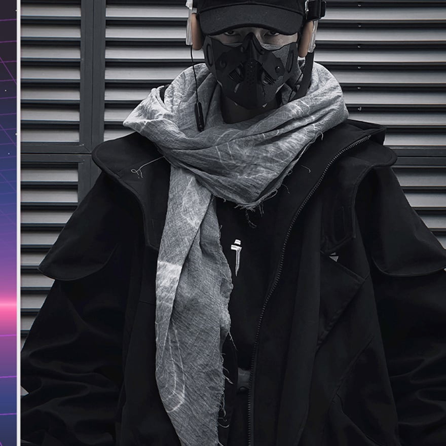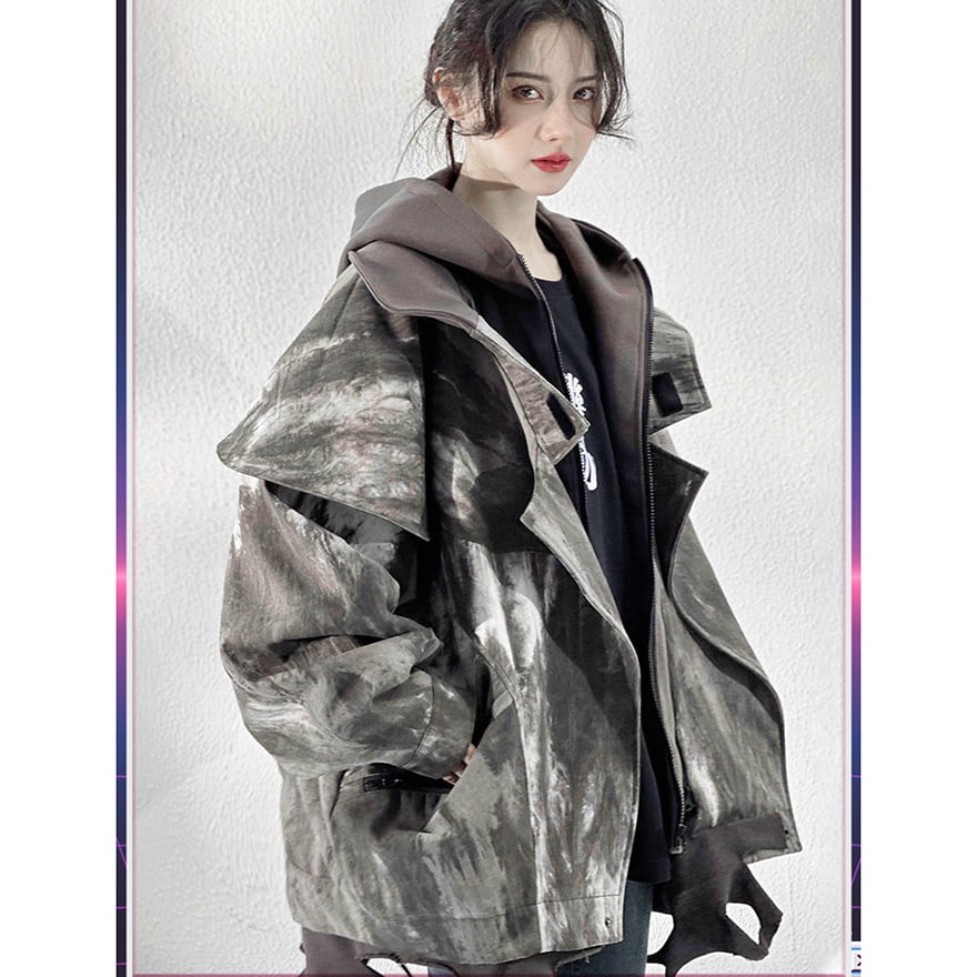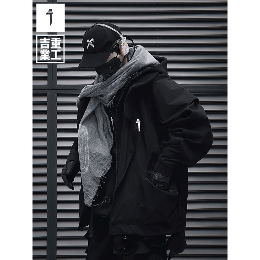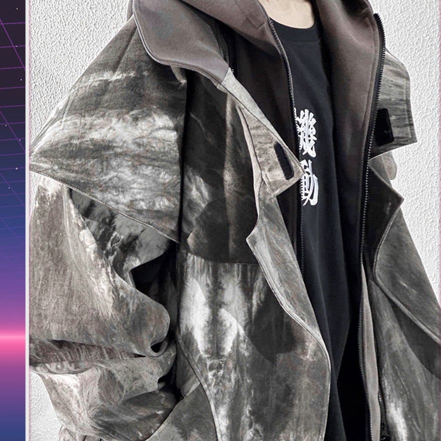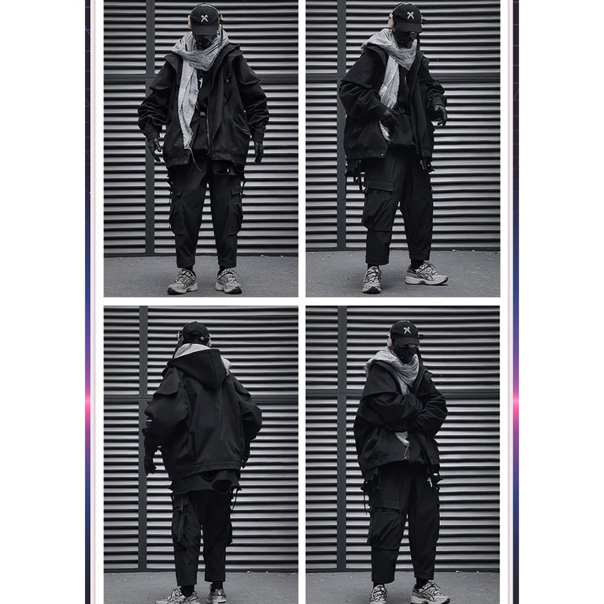 関連キーワード: #サイバーパンク #テックウェア #ジャケット #フェイクツーピース #レイヤード #ストリートファッション #モード系 #ユニセックス #アウター #ダメージ加工