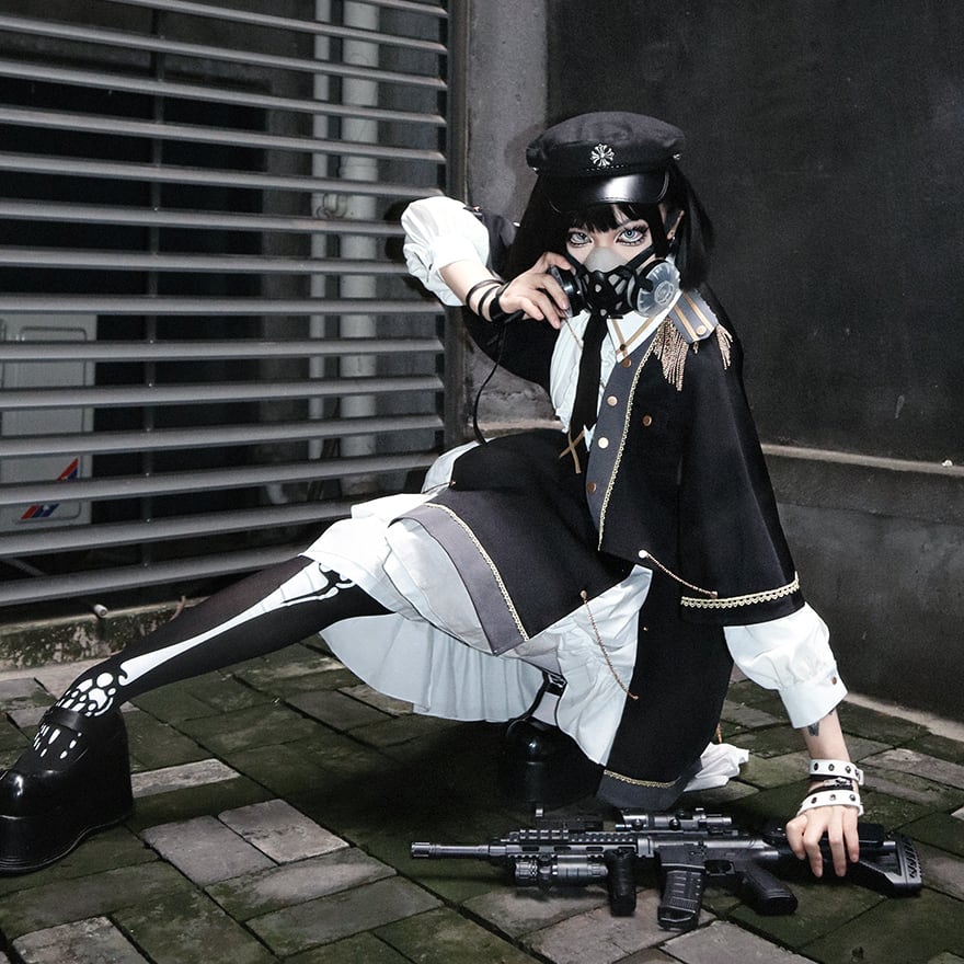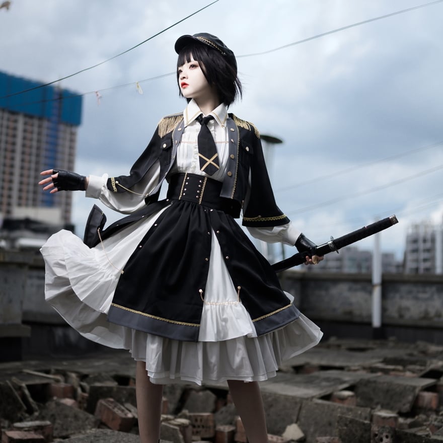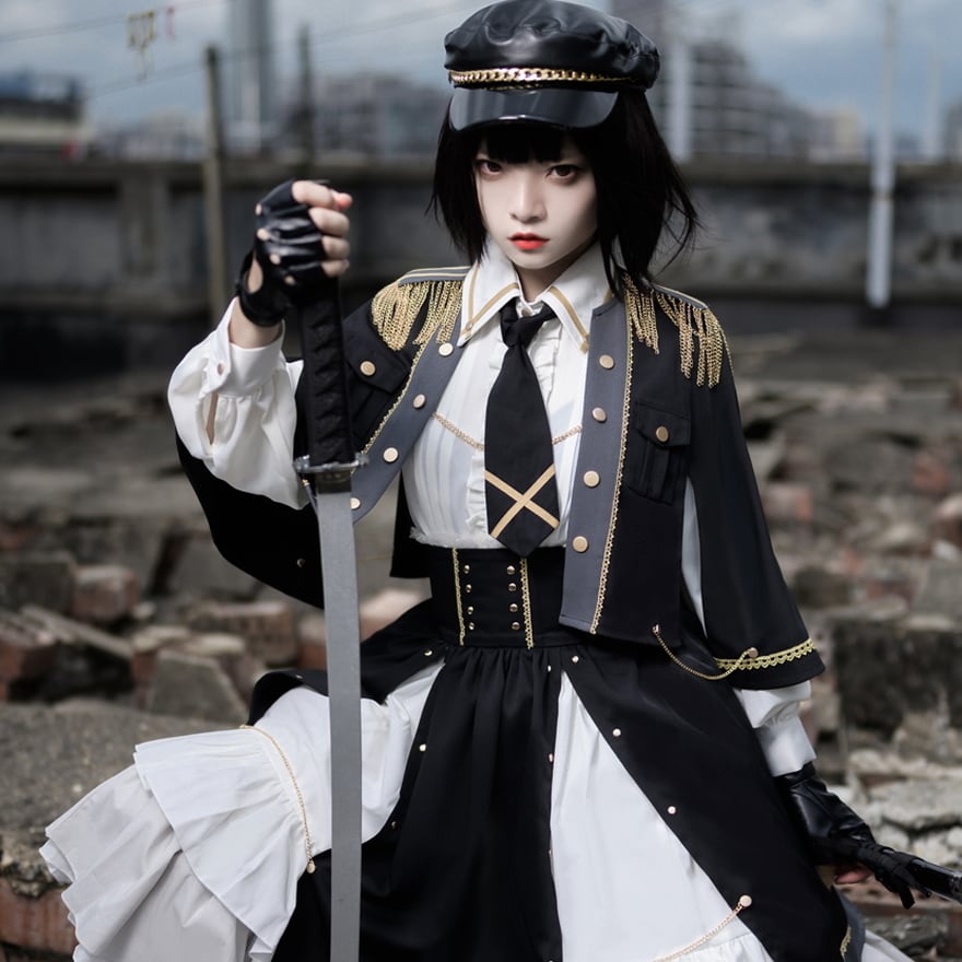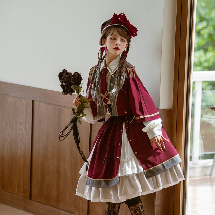 【即納レッド】 軍服ロリィタ エンブレムクロス ゴールドブレード装飾 華麗なるボルドータイ