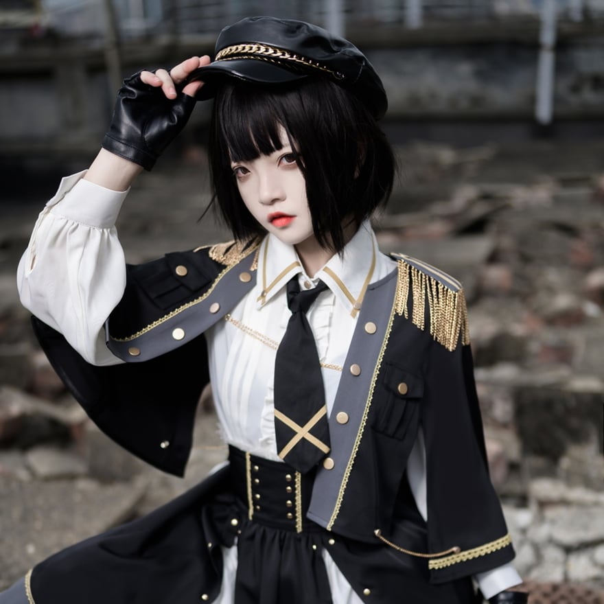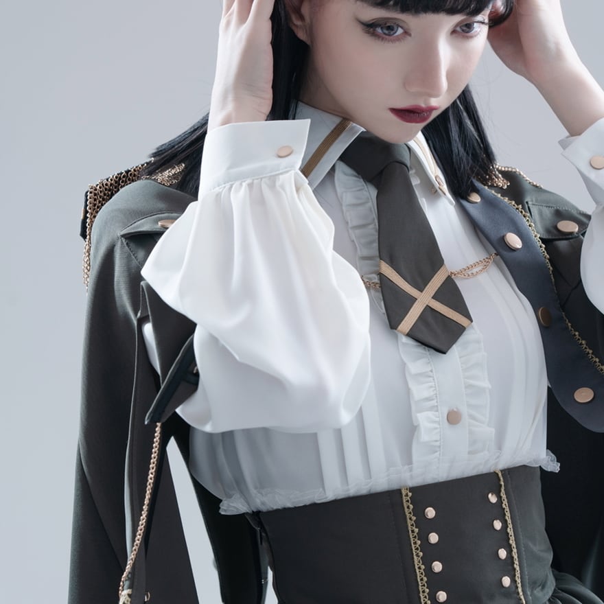 統一感のあるカラー: ボルドーとゴールドの組み合わせは、軍服ロリィタはもちろん、ゴシックや皇子系の衣装とも非常に相性が良く、全体の統一感を高めます。