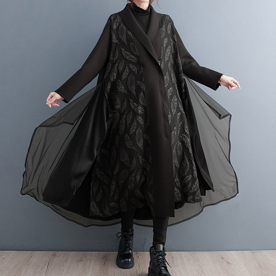 関連キーワード: #ゴシック #モード系 #ロングコート #異素材mix #リーフ柄 #黒コーデ #シアー素材 #個性派 #エレガント