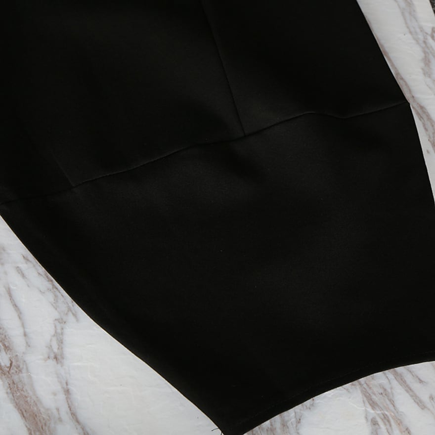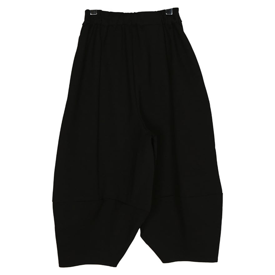 ハリのあるブラック生地を使用し、太もも周りにゆとりを持たせた丸みのある立体的なシルエットが特徴的なクロップドパンツです。