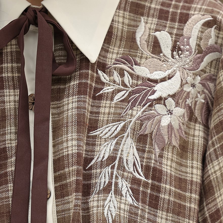 関連キーワード: #クラロリ #華ロリ #セットアップ #チェック柄 #刺繍 #ロングスカート #秋コーデ #文学少女 #レトロ #可愛い