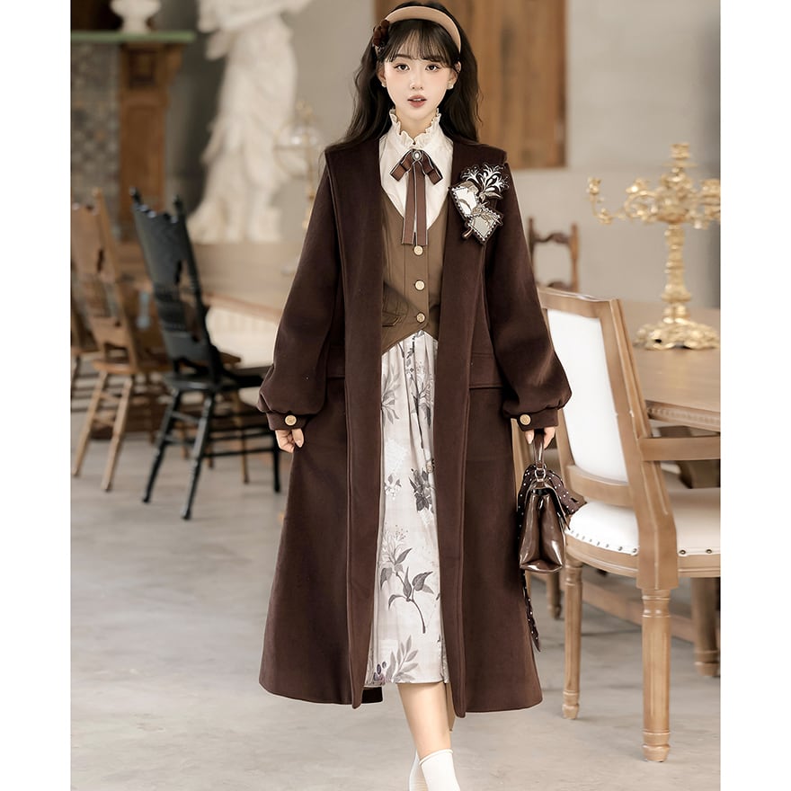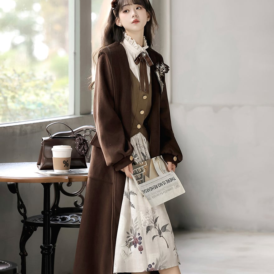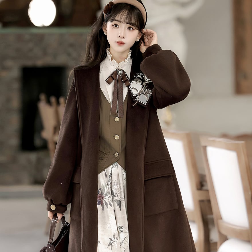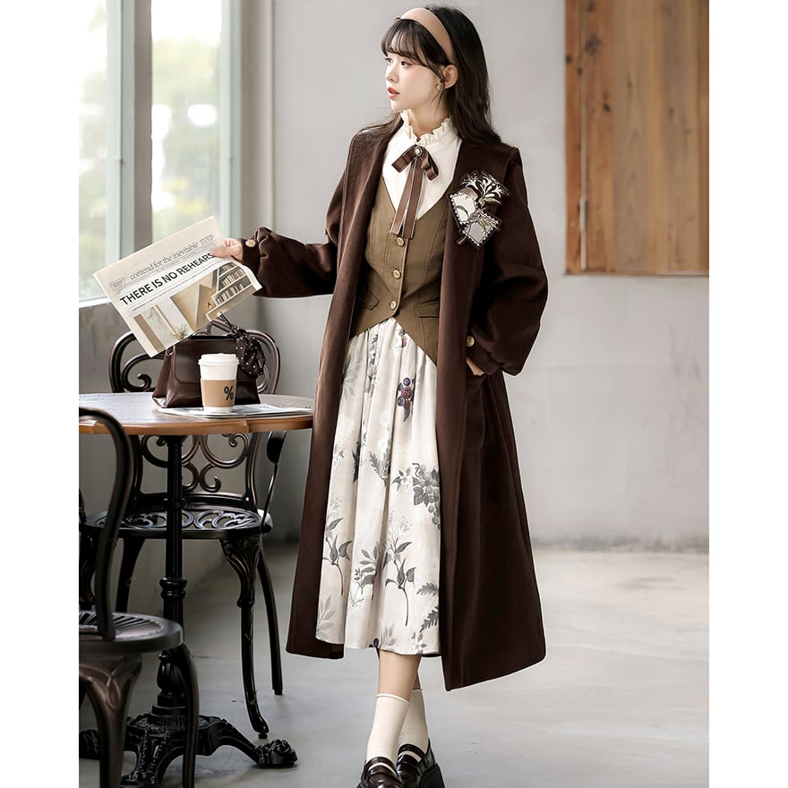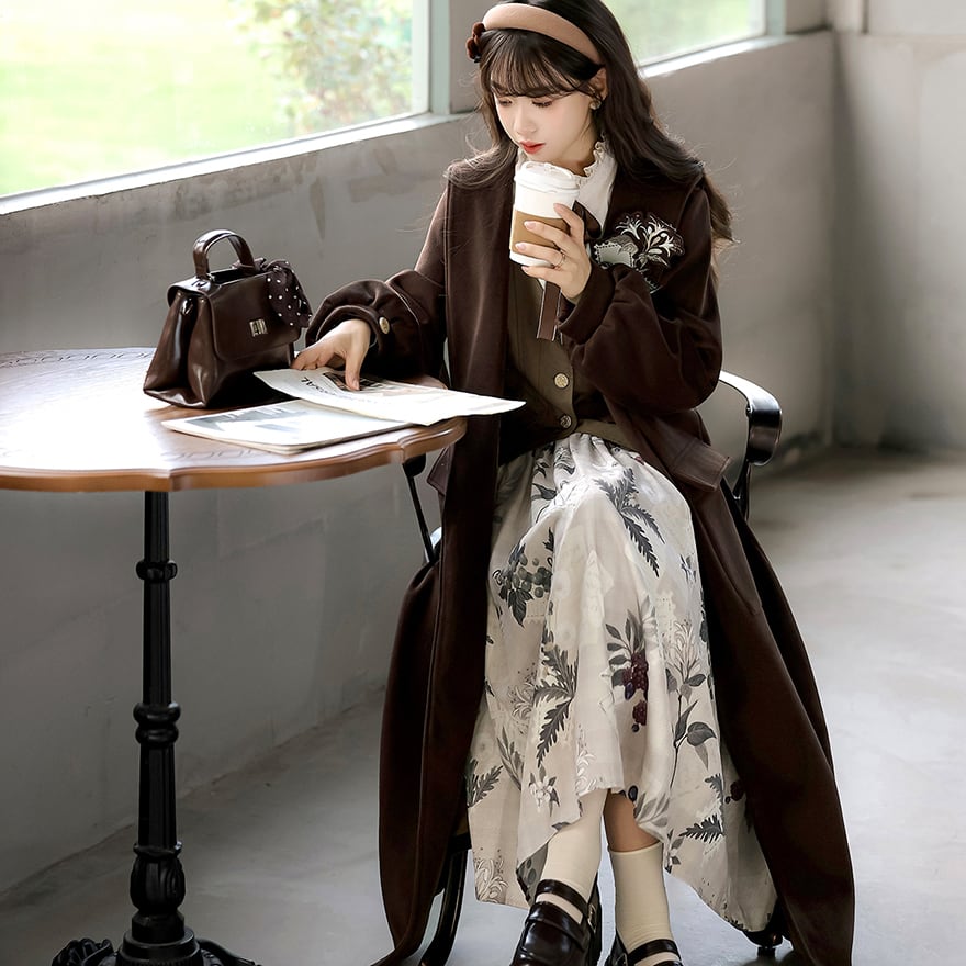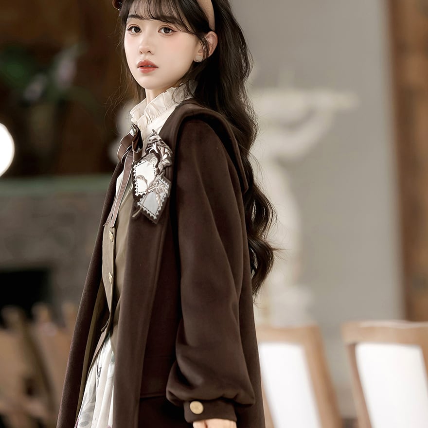 関連キーワード: #クラロリ #セットアップ #女学生風 #文学少女 #ブラウンコーデ #秋ファッション #コート #レトロ #普段着ロリィタ #可愛い