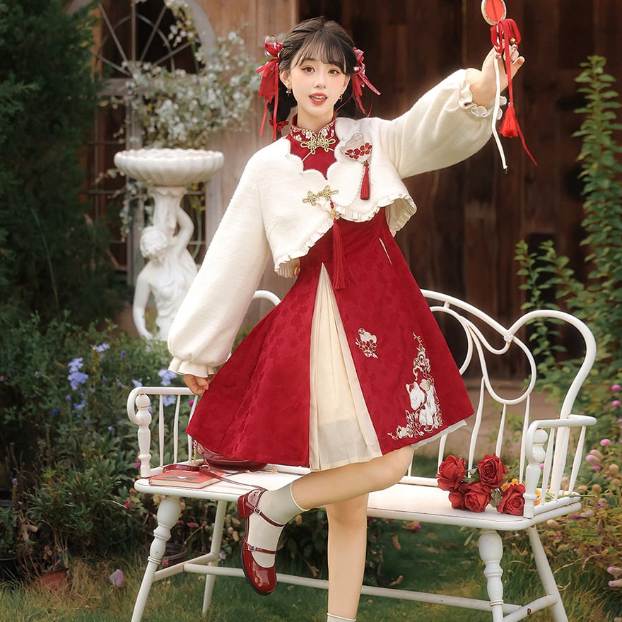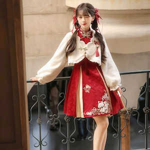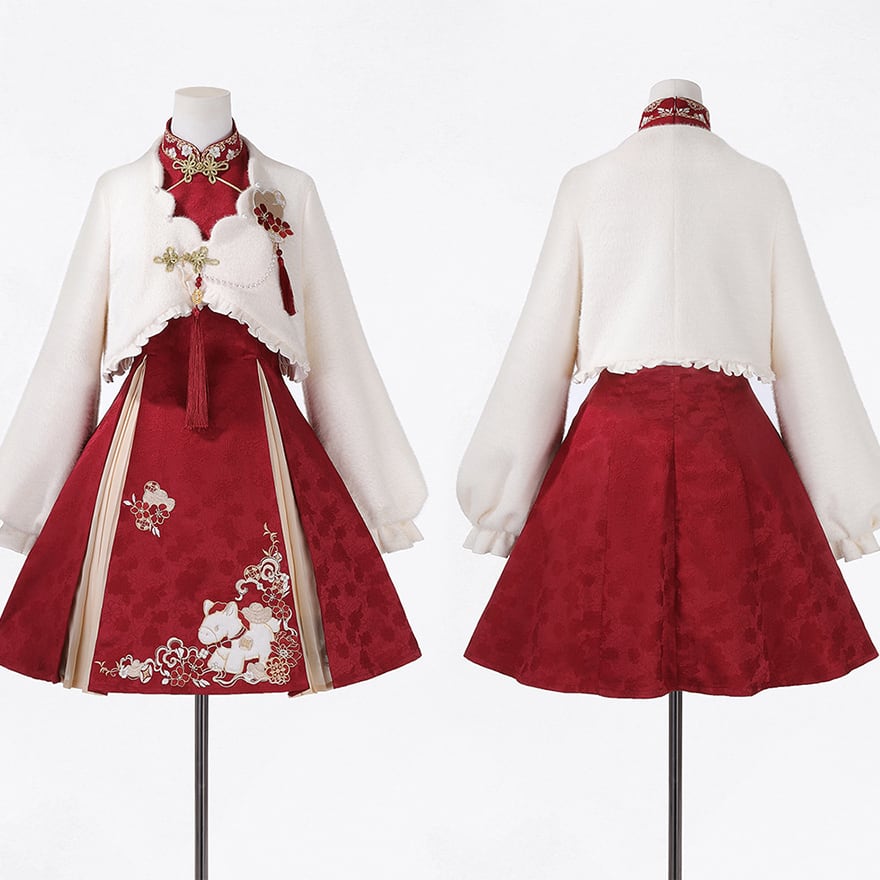 関連キーワード: #中華ロリ #華ロリ #甘ロリ #クリスマス #セットアップ #チャイナ風 #赤ワンピ #冬コーデ #ファー #可愛い