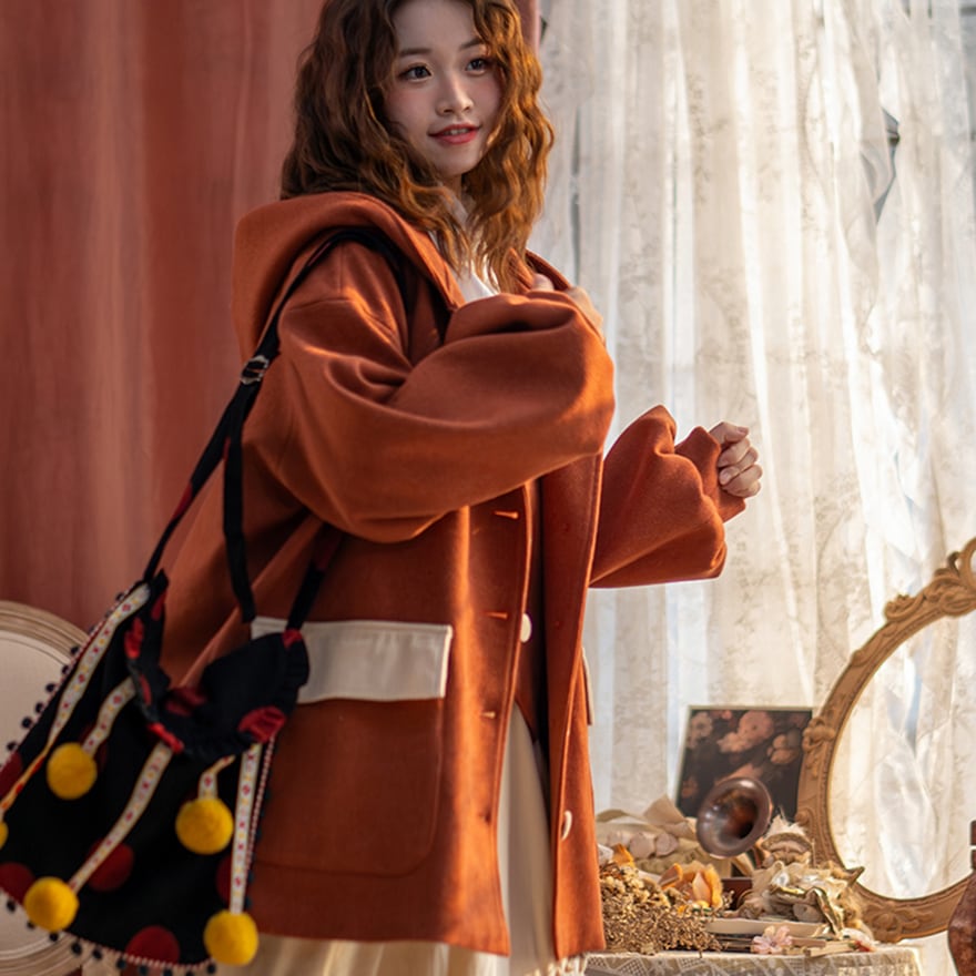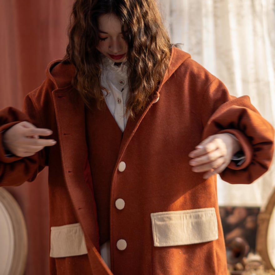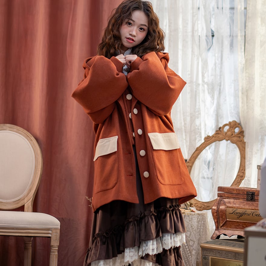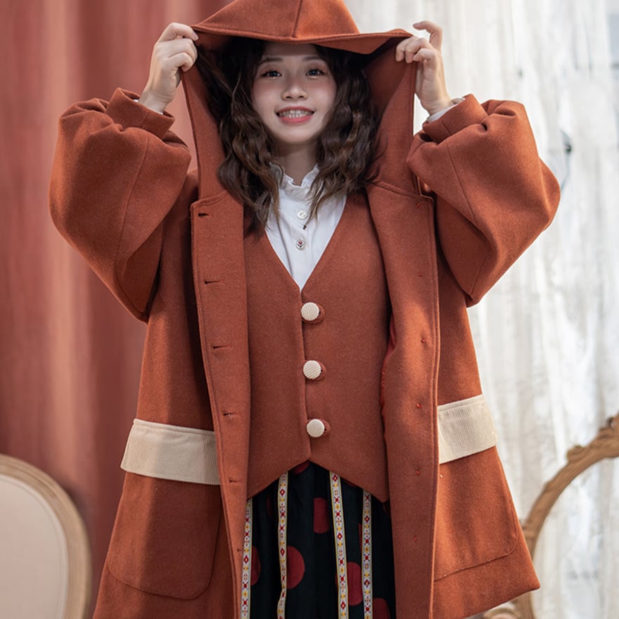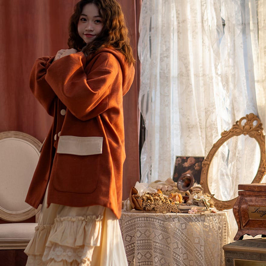 関連キーワード: #セミロリ #森ガール #ジャケット #フード付き #テラコッタ #レトロ #アウター #秋冬コーデ #カジュアルロリータ #ボリューム袖