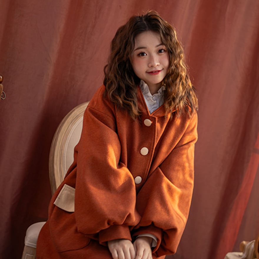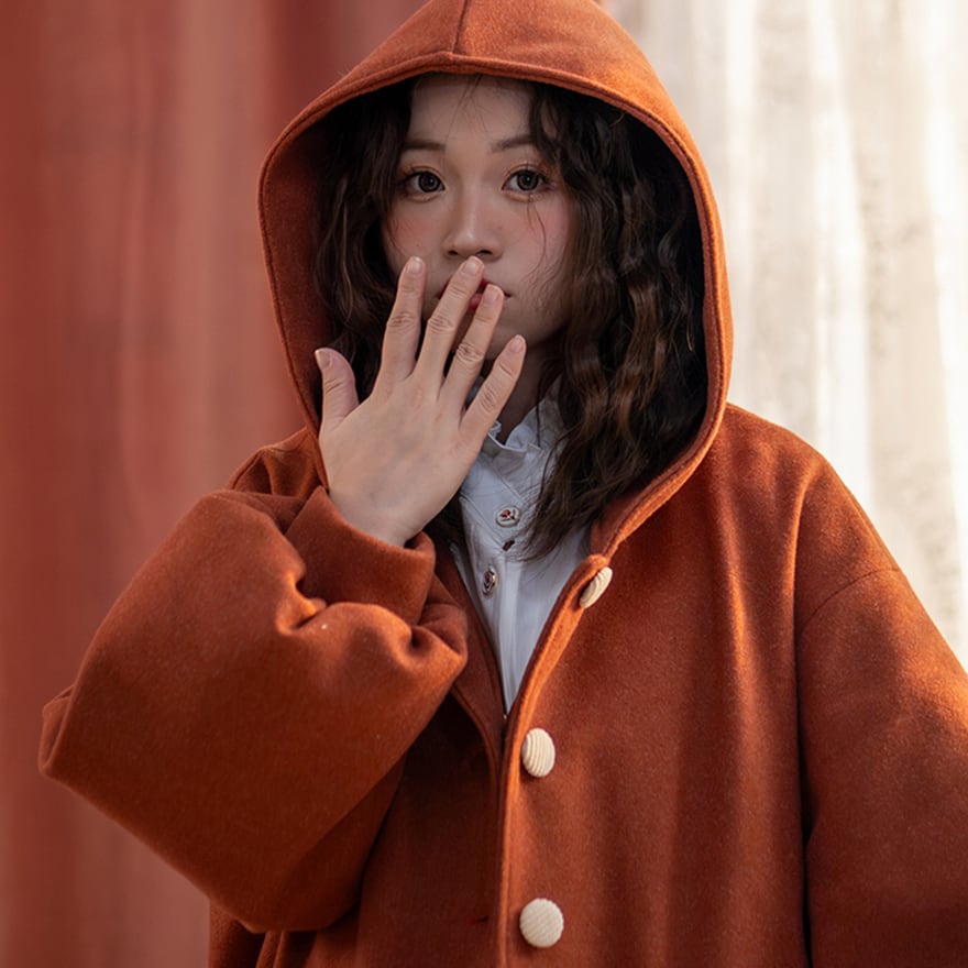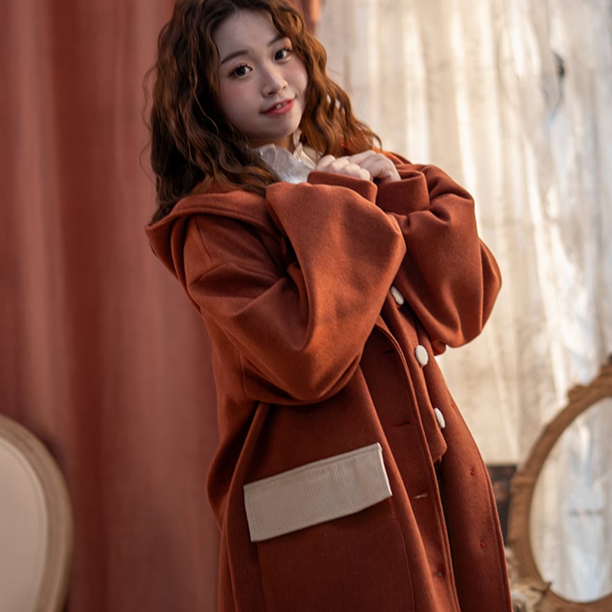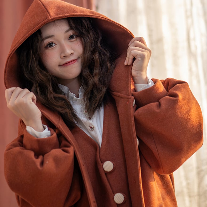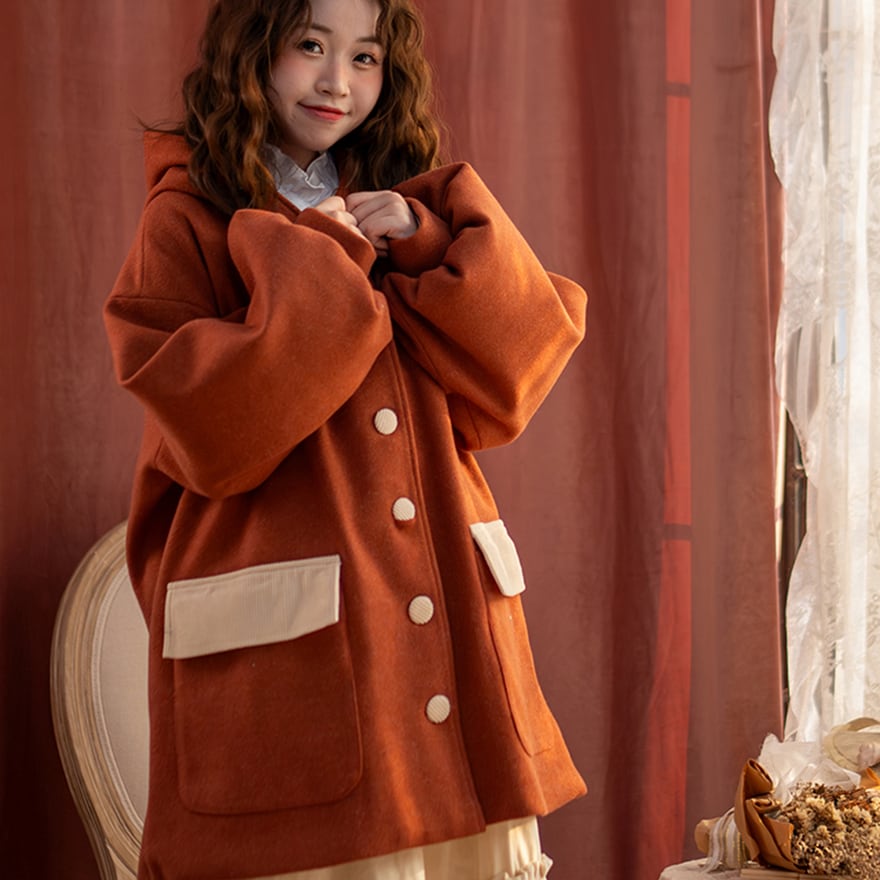 関連キーワード: #セミロリ #森ガール #ジャケット #フード付き #テラコッタ #レトロ #アウター #秋冬コーデ #カジュアルロリータ #ボリューム袖