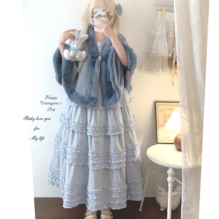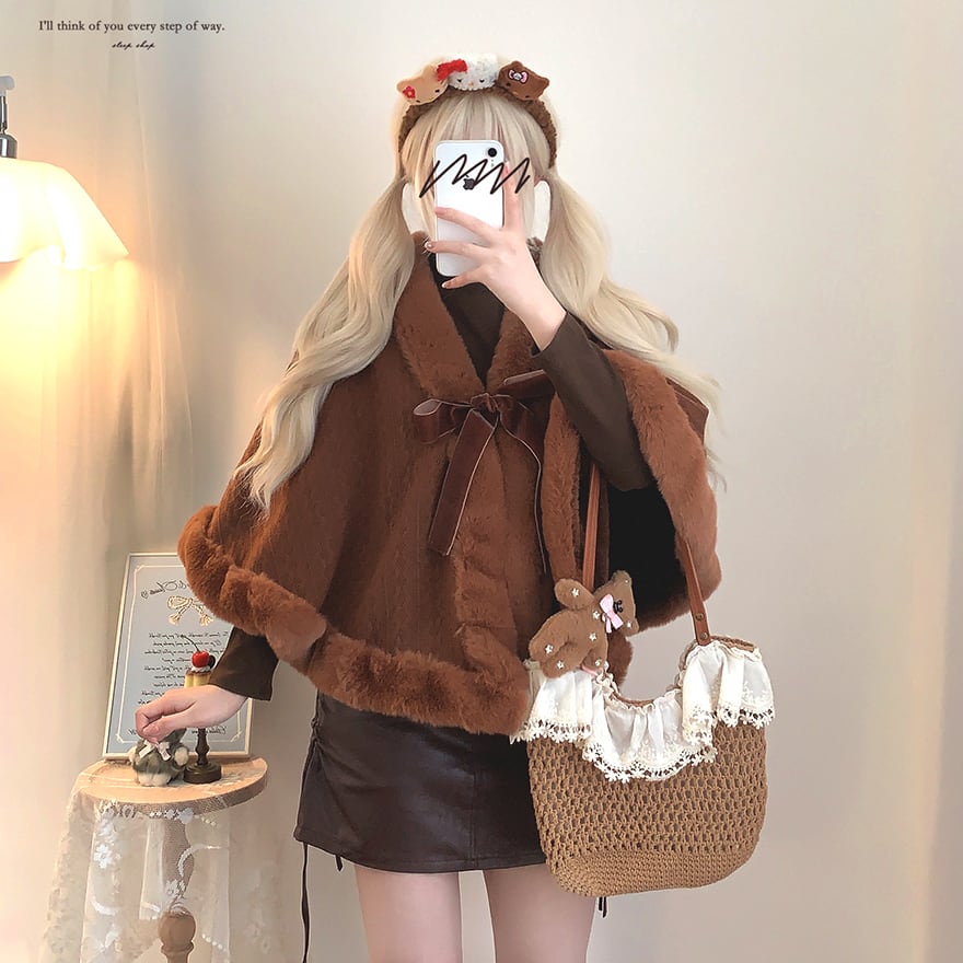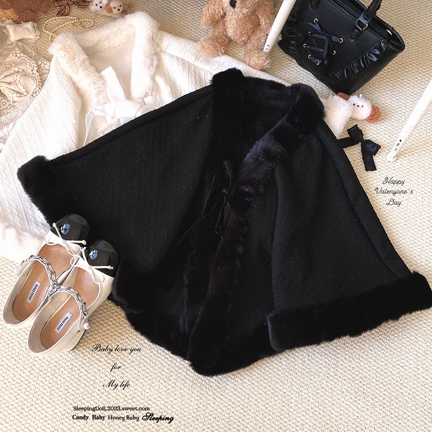関連キーワード: #セミロリ #ポンチョ #ケープ #フェイクファー #リボン #裏起毛 #防寒 #ガーリー #推し活 #冬コーデ