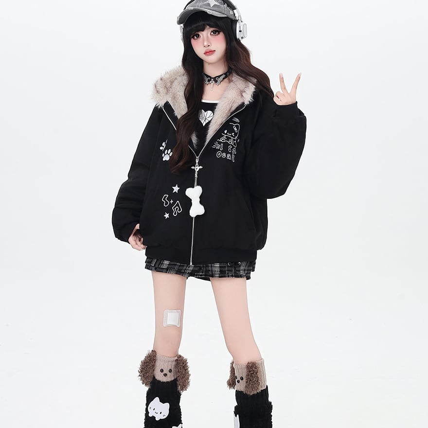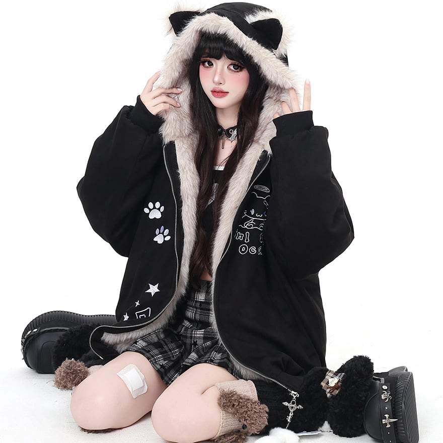 関連キーワード: #地雷系 #猫耳 #スエード #ブルゾン #サブカル #パンク #原宿系 #萌え袖 #アウター #防寒 #もこもこ