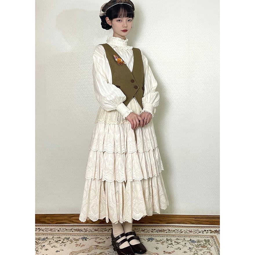 【予約商品】納期50日 森ガール 量産型 レイヤード 3段 ケーキスカート 生成色 ロング丈 アンティーク 英国スタイル