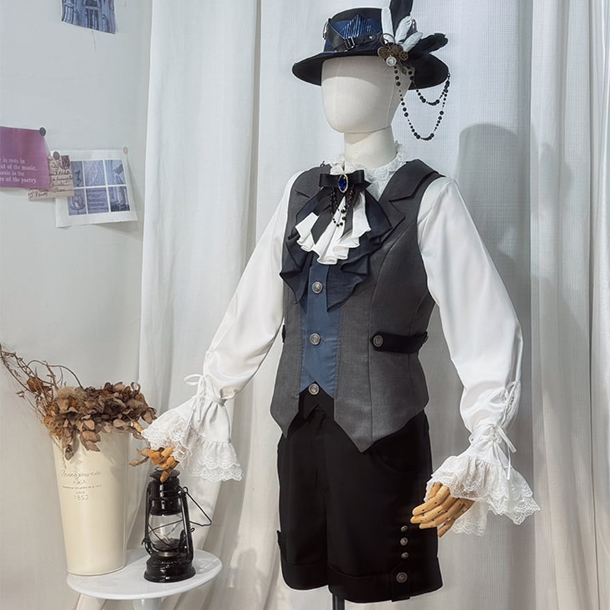 これ一枚で、王子系、少年装コーデの格を上げる主役級ブラウスです。優雅な立ち襟とピンタックのデザインは、ベストやジャケットと合わせた際に最も美しく見えるよう設計されており、重ね着の着こなしに深い奥行きを与えます。ゴスロリ、ロリィタの甘めのスカートと合わせることで、甘辛ミックスな着こなしも楽しめます。