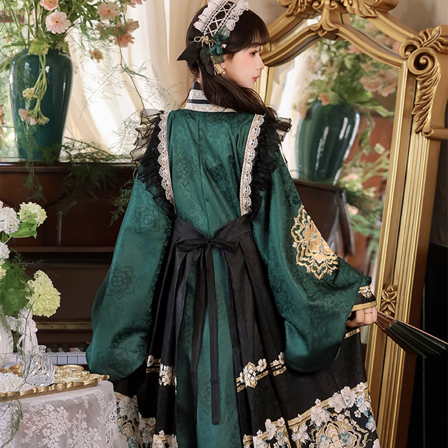 関連キーワード: #中華ロリィタ #華ロリ #漢服 #刺繍 #メイド服 #セットアップ #深緑 #クラシカル #エレガント #撮影会