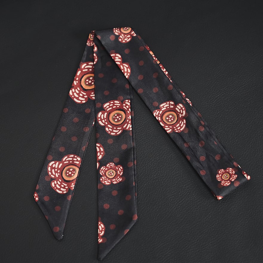 独特な花柄とドットがあしらわれた多機能スカーフです。
