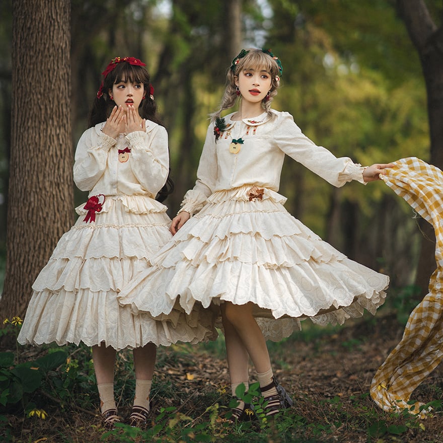 ロング丈のスカートやジャンパースカートと合わせれば、正統派のクラシカルロリータや森ガールスタイルが完成します。