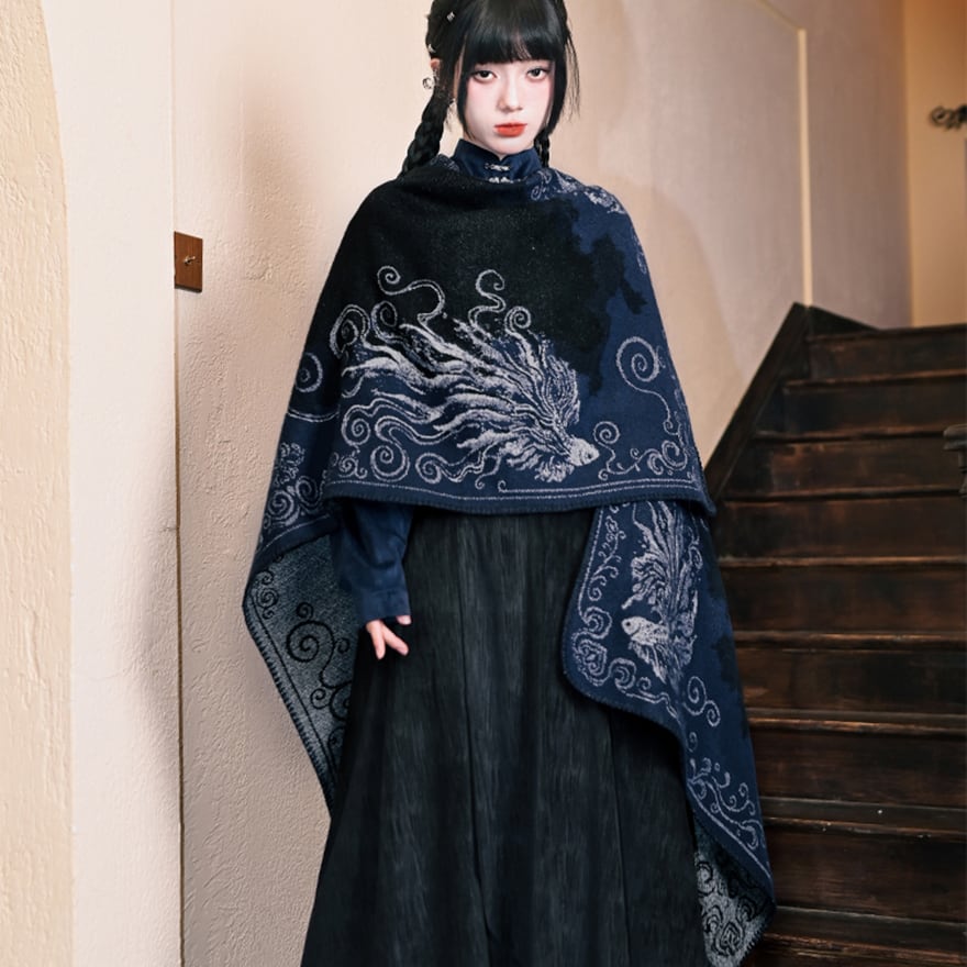 関連キーワード: #古怪舎 #中華ゴシック #大判ストール #ショール #魚柄 #レトロモダン #和洋折衷 #サブカル #マント #防寒