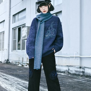 関連キーワード: #古怪舎 #中華サブカル #チャイナ風 #青ニット #刺繍 #Vネック #大人ゴシック #オーバーサイズ #冬コーデ #幻想的